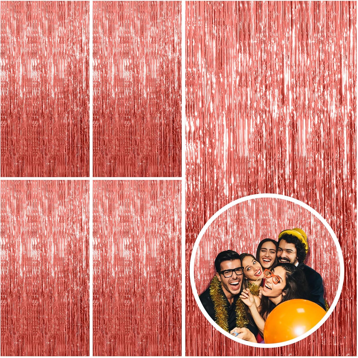- Party Streamers Backdrop: 5Packs/Set, each pack curtains size is 3.28 ft x 6.56 ft, enough length foil fringe backdrops are perfect for the door or wall to create an impressive decoration for parties, events, and photo booths. Create your own party decorations now!