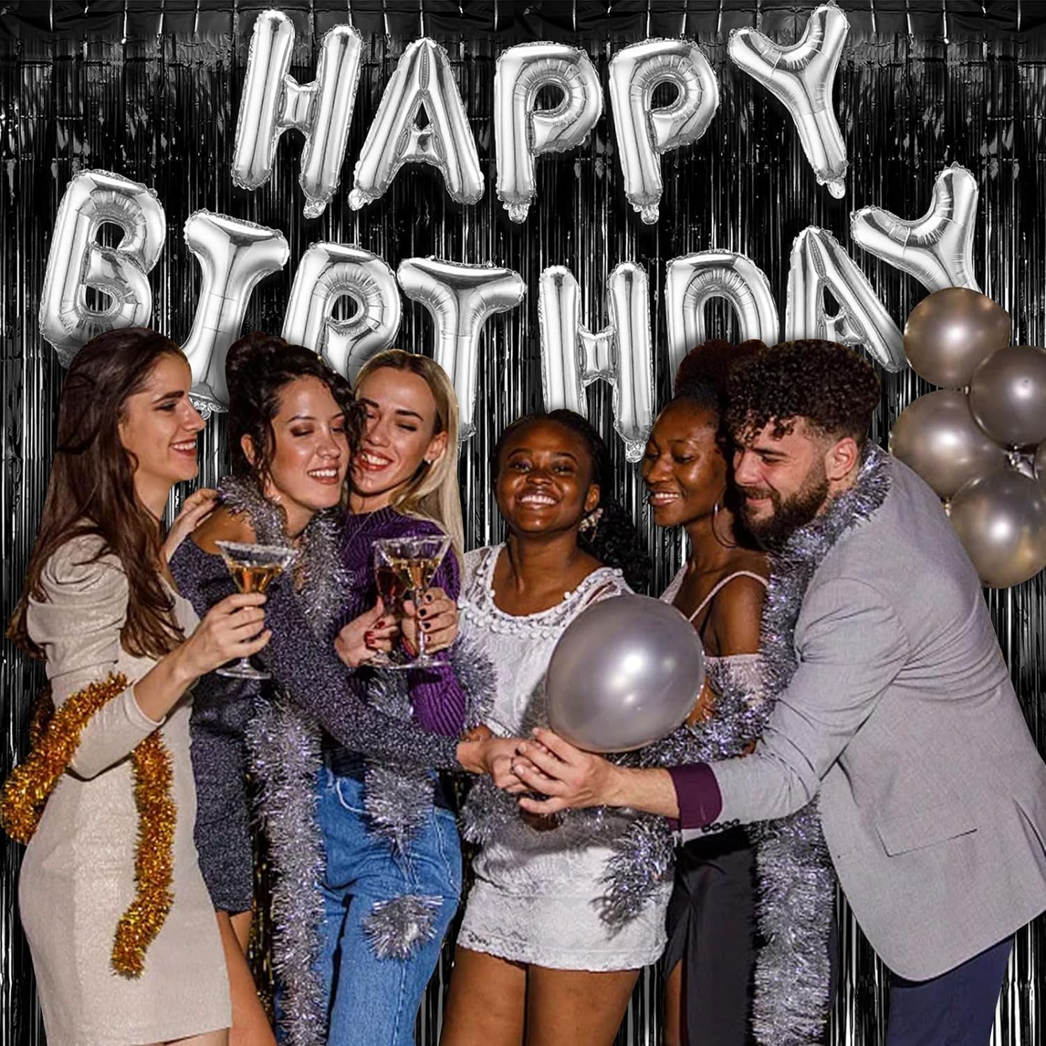 5 Pack Black Party Streamers Backdrop Tinsel Foil Fringe Curtains Halloween & Birthday Party Decorations