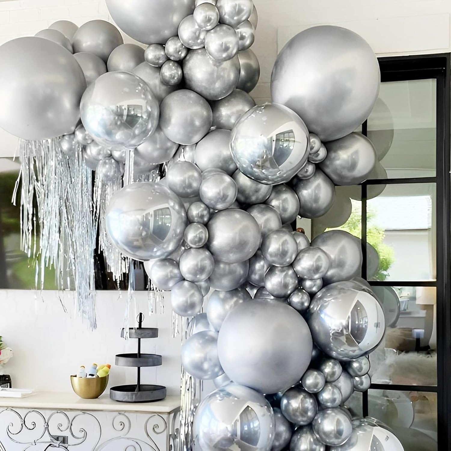 - Various Sizes: Carefully designed with 4 different sizes silver latex balloons : 18inch, 12inch, 10inch, and 5inch, ensuring you have more flexibility in decorations. From creating splendid silver balloon arch to crafting exquisite balloon backdrop, make your silver balloon garland arch kit look more layered, your creativity knows no bounds