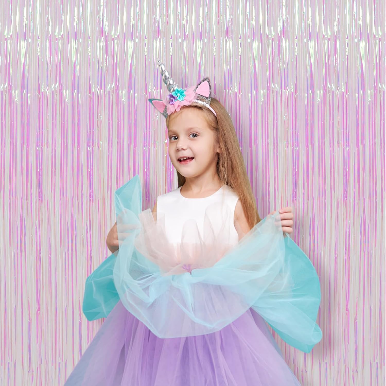2 Pack Iridescent Transparent Foil Fringe Backdrop Curtains, Tinsel Streamers Birthday Party Decorations, Fringe Backdrop for Graduation, Baby Shower, Gender Reveal, Disco Party