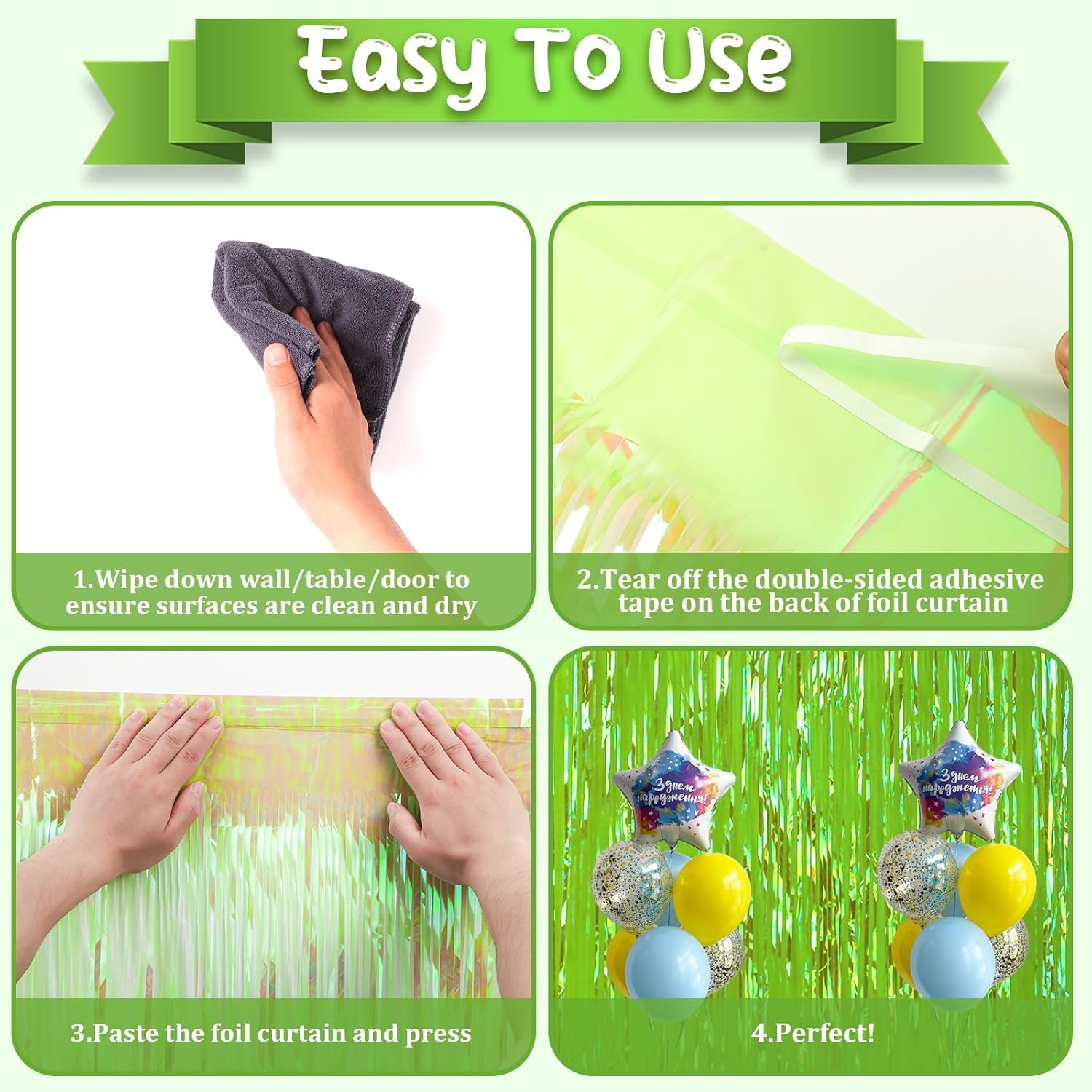 - Premium Material: This Neon Green foil curtain backdrop is made of stable tinsel, non-fading, stay shiny and reusable. Unfold it and then enjoy your glittering party