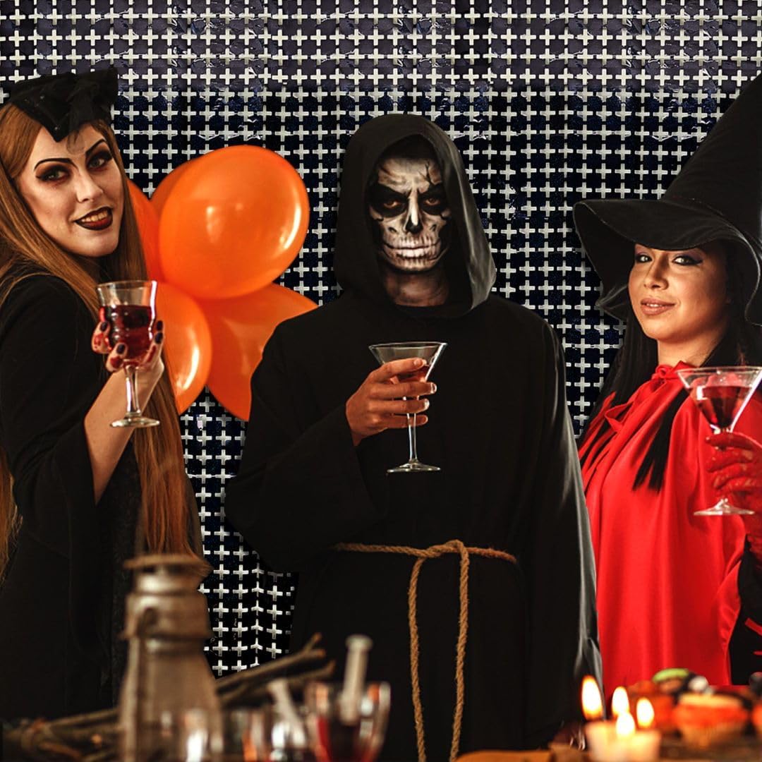 Square Tinsel Curtain Party Backdrop - 5pcs Glitter Foil Fringe Curtain Party Decor Black Photo Booth Backdrop Streamers for Halloween, Christmas, Birthday, Graduation, Wedding Party Decorations