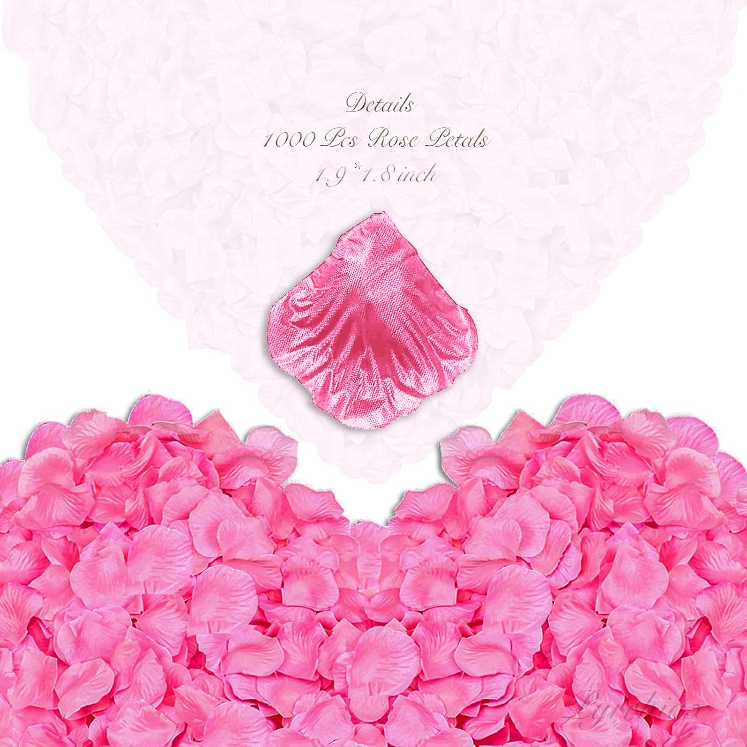 1000Pieces Rose Petals, Artificial Flower Petals Fake Rose Petals for Romantic Night,Wedding,Proposal Anniversary Flower Decorations (Deep Pink)
