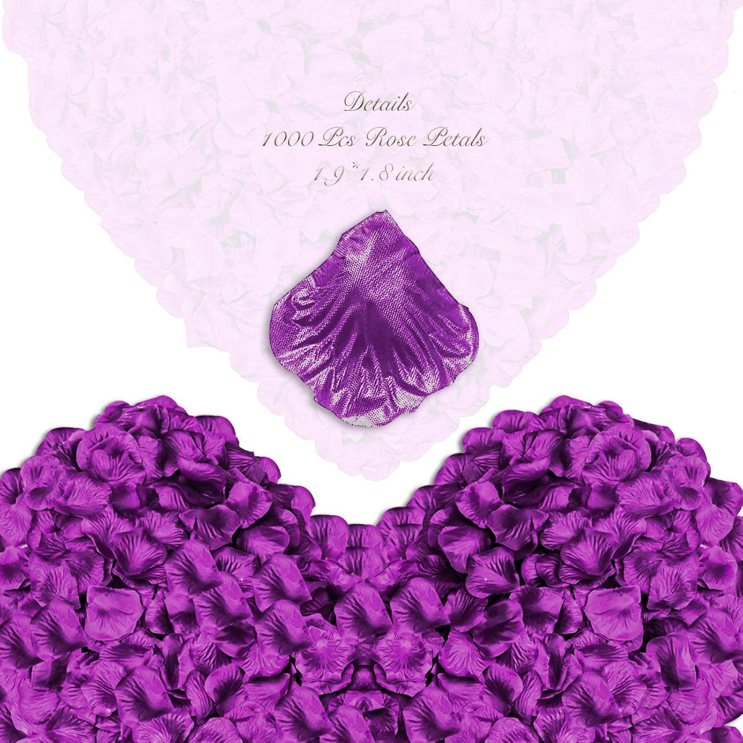 1000Pieces Rose Petals, Artificial Flower Petals Fake Rose Petals Silk Red Rose Petals for Romantic Night,Wedding,Proposal Anniversary Flower Decorations (Deep Purple)