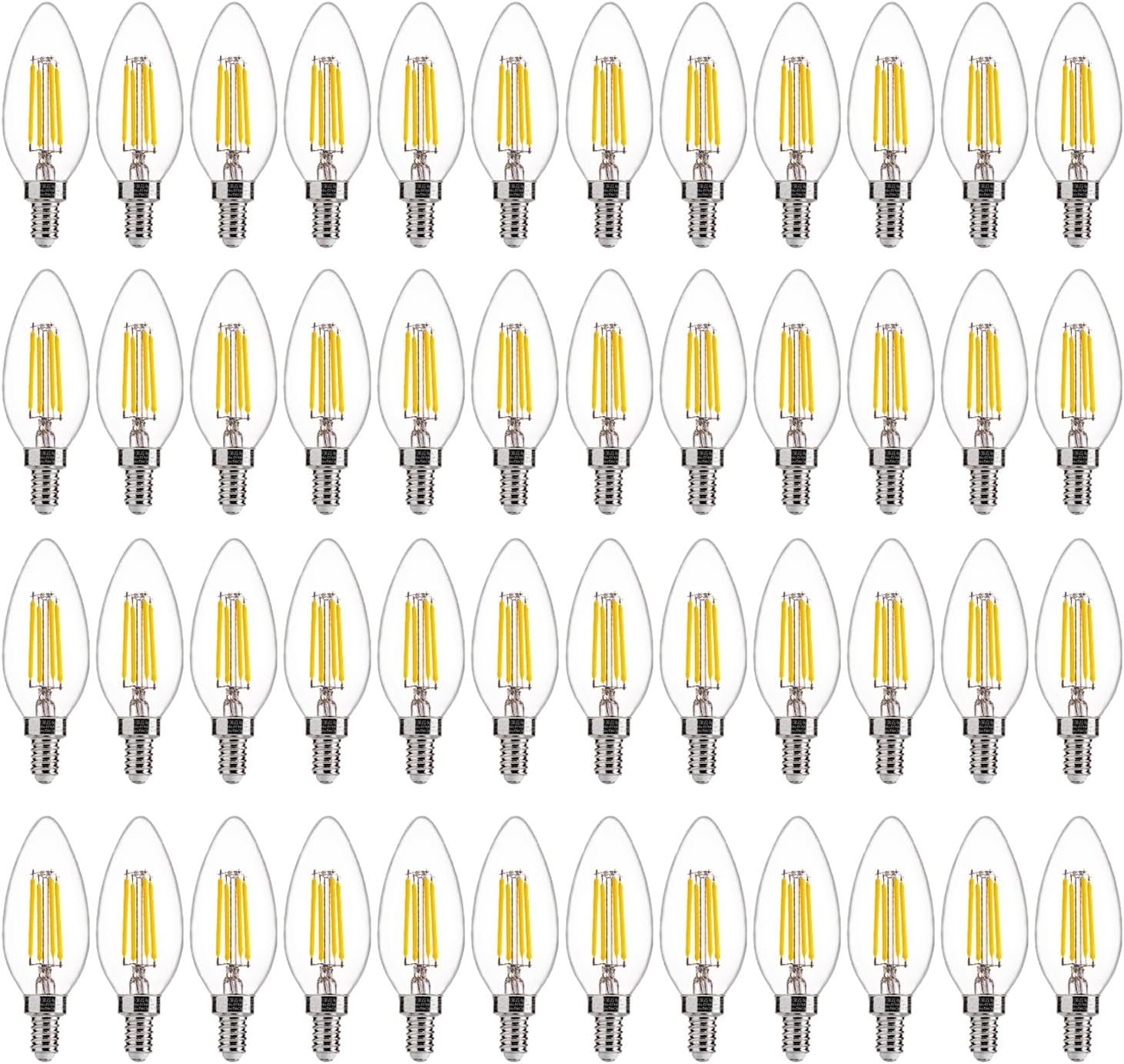 FLSNT 48 Pack Dimmable LED Candelabra Bulbs, 40W Equivalent LED Chandelier Light Bulbs, E12 Base, 5000K Daylight UL,CA65 Listed.