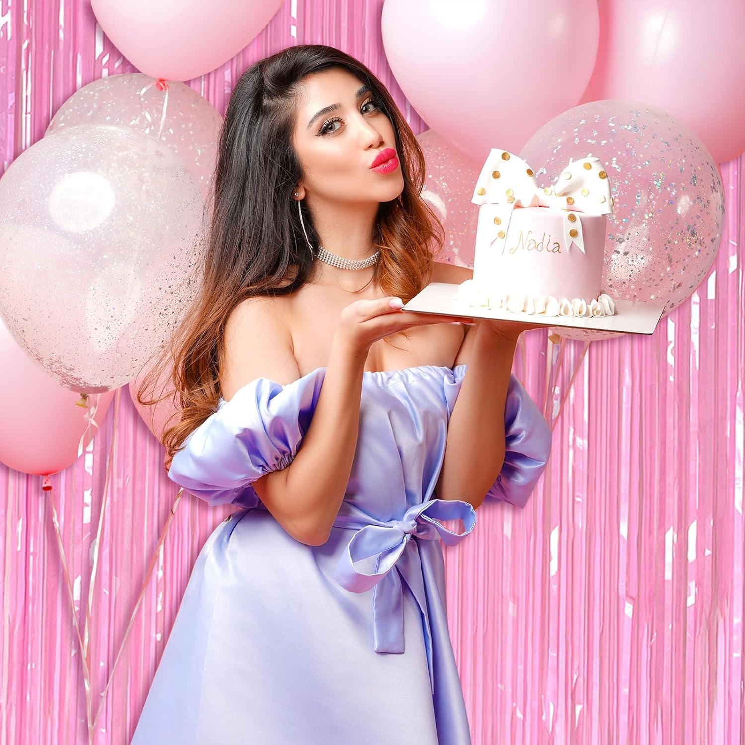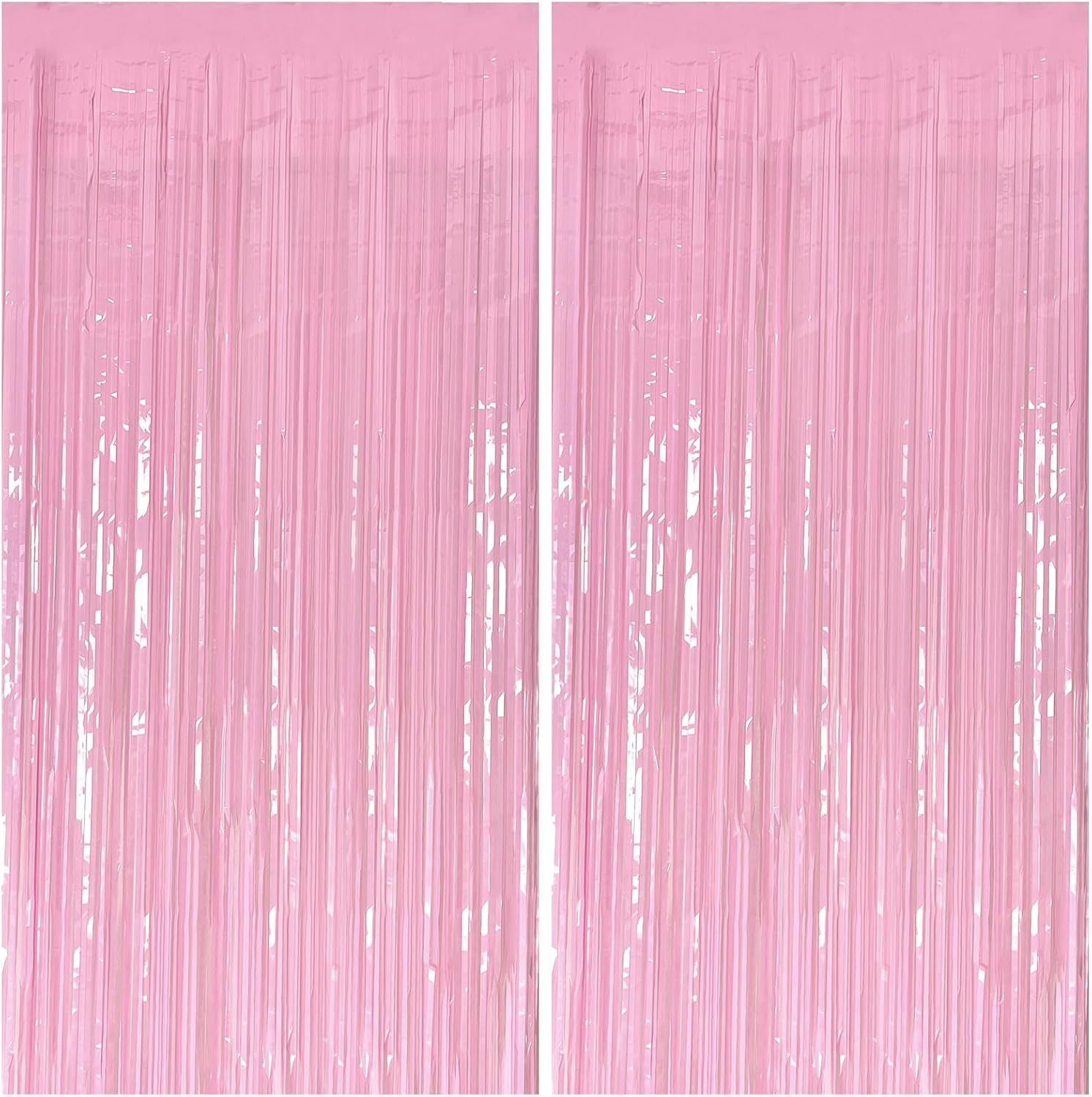 Pastel Pink Party Streamers Foil Fringe Backdrop Curtains Tinsel Streamers Birthday Party Decorations Fringe Backdrop for Birthday Valentines Gender Reveal Party Bridal Shower