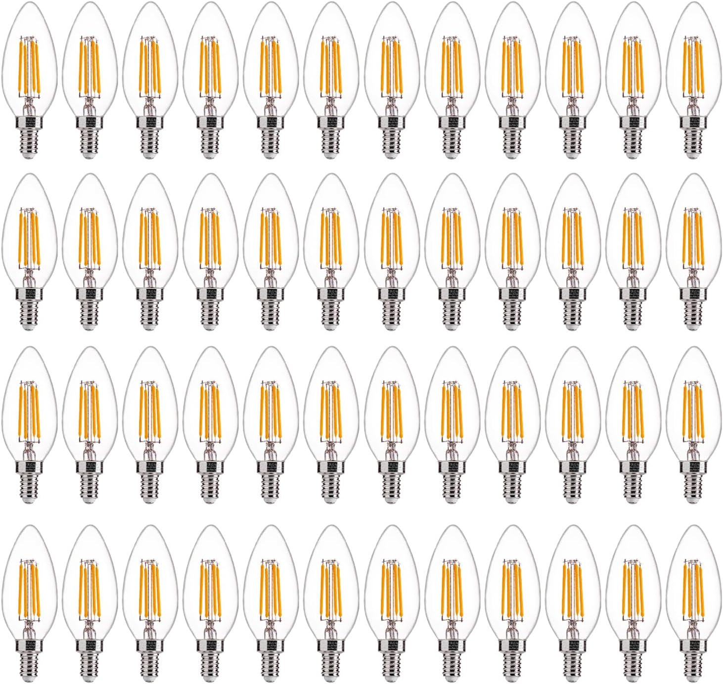 FLSNT 48 Pack LED Candelabra Bulbs 60W Equivalent, B11 Dimmable LED Chandelier Light Bulbs, E12 Base, 2700K Soft White UL,CA65 Listed.