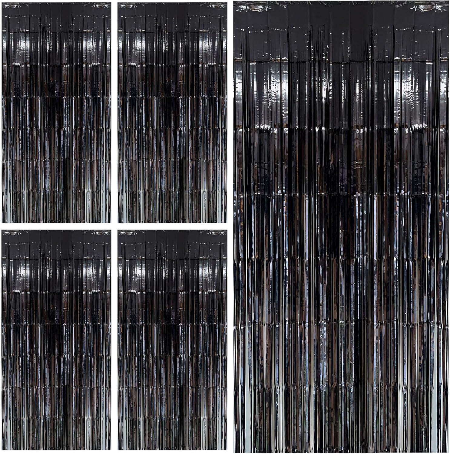Black Party Streamers Foil Fringe Backdrop Curtains Tinsel Streamers Birthday Party Decorations Fringe Backdrop for Birthday Party Graduation Bridal Shower