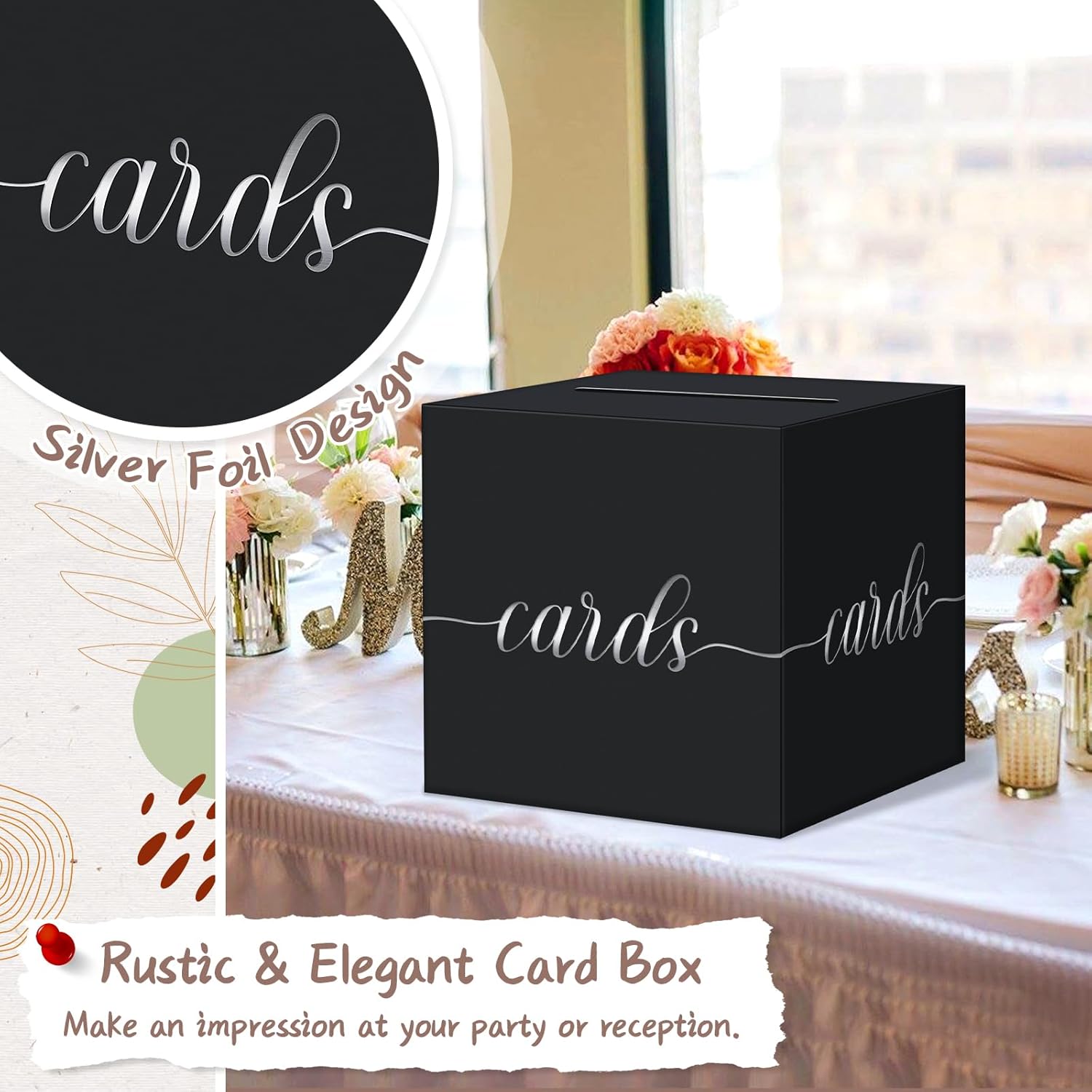 - Silver Foil Black Card Box Size: Pack of 1, card box measures 8.7 x 8.7 x 8.7 inches, large size to hold all sizes of envelope cards for weddings or parties.