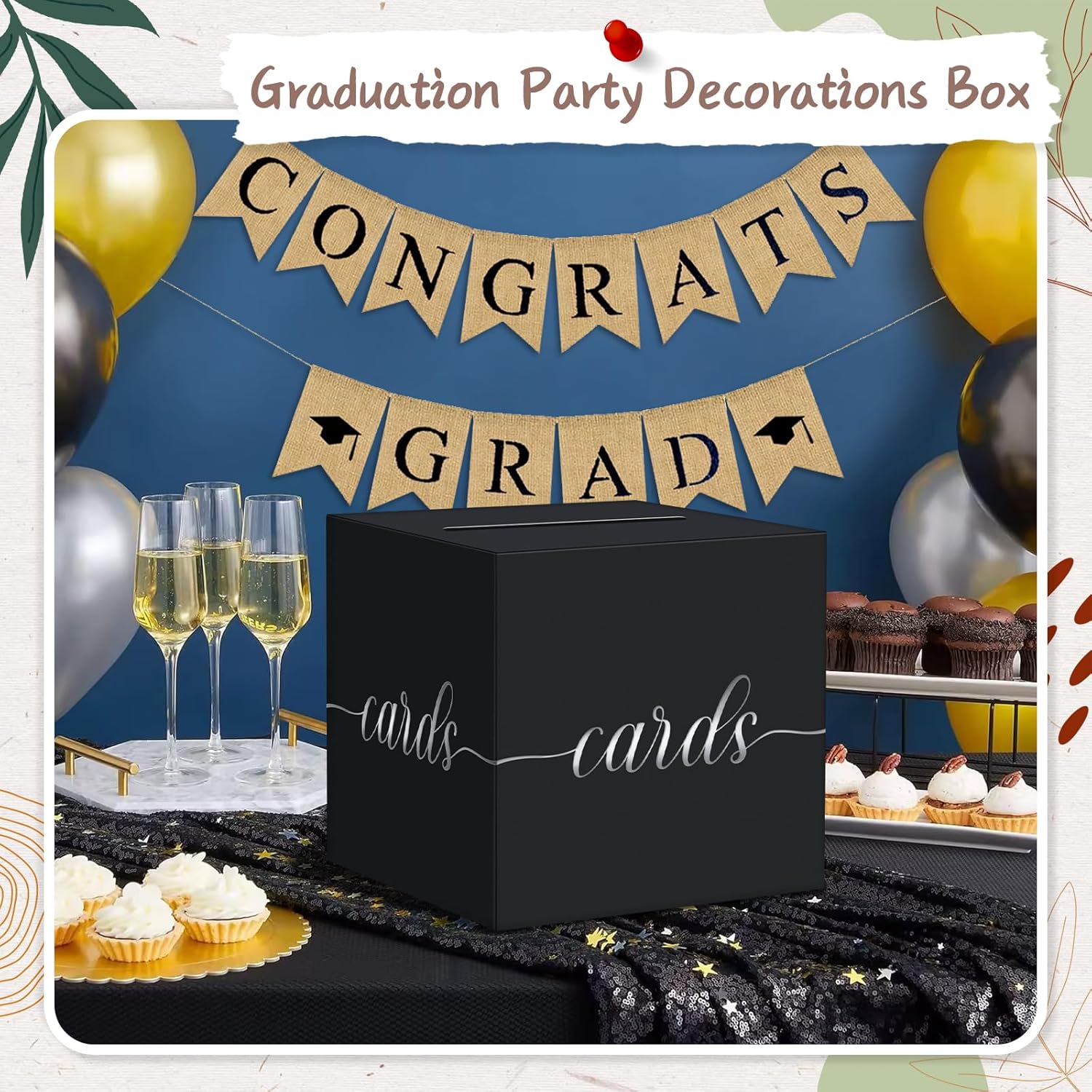QIKSION Black Wedding Card Box, Silver Foil Gift Card Box for Party, Wedding Reception, Graduation, Birthday, Baby Shower, Raffle