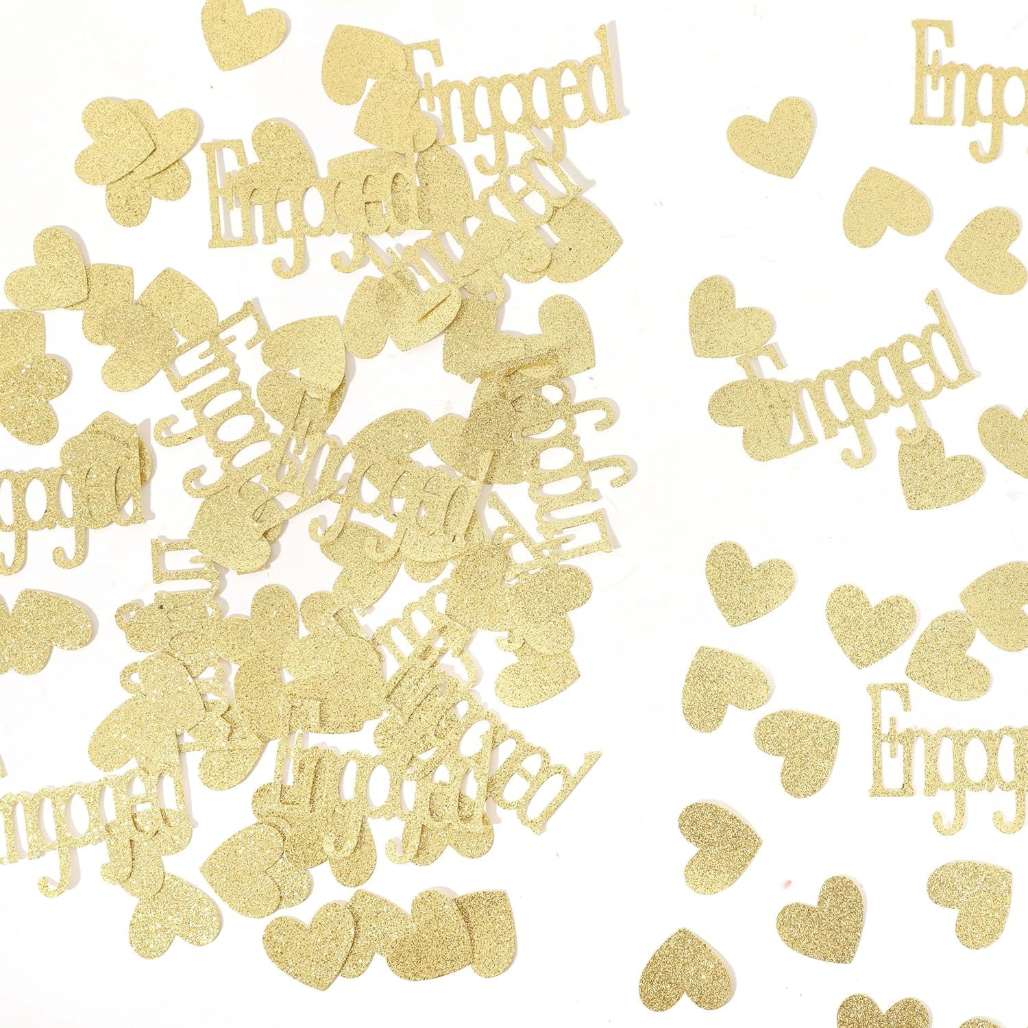- MULTIPURPOSE - Gold Engagement Confetti Can Be Sprinkled Directly On The Table Or Party Floor, Or Used As Fillers To Decorate Balloons, Greeting Cards, Cakes, Gift Boxes, Etc.