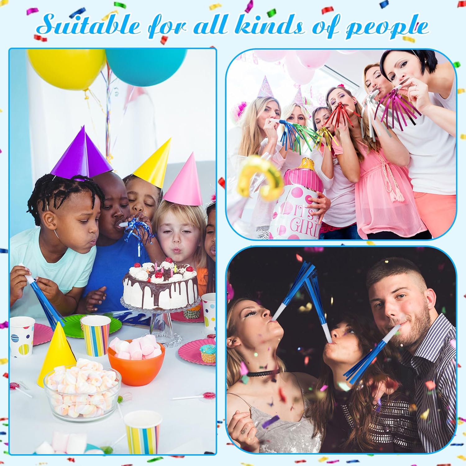 - Wide application: These party horns are suitable for various occasions, such as birthday party, wedding, baby shower, New Year's Eve, carnival, etc., creating a festive atmosphere, making your party more interesting.
