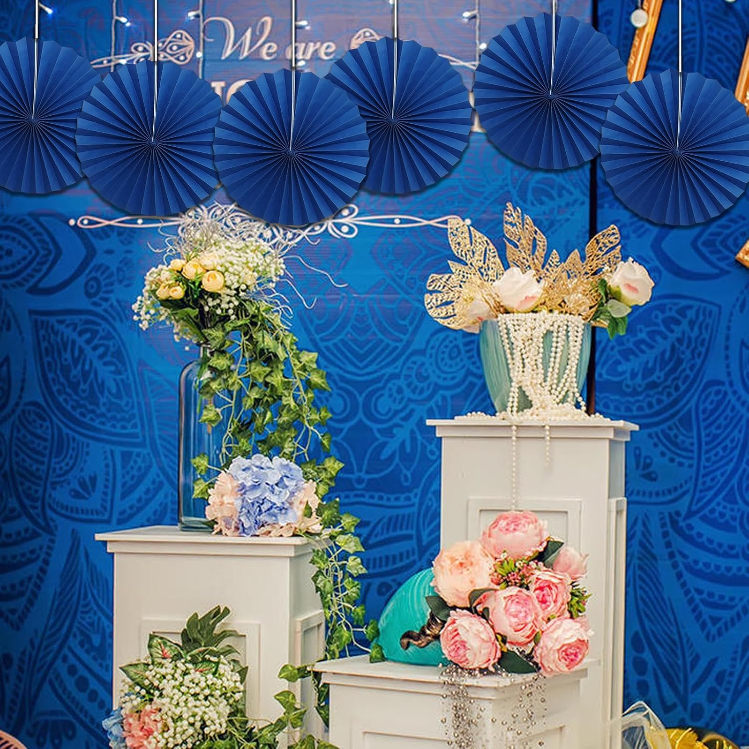 BARTHEW Blue Birthday Decorations,DIY Blue Paper Fans Hanging Decoration ,Party Decorations for Adults 16in, Royal Blue Birthday Decorations,Baby Shower Decorations 30 Color DIY Set (Navy Blue)