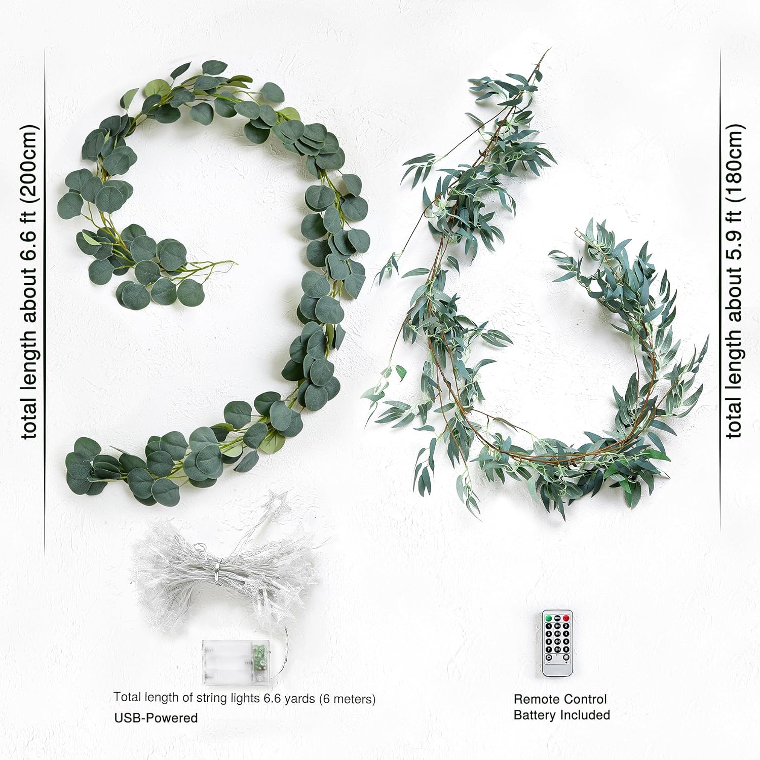 - Color : Willow and Eucalyptus Garlands With 33 Feet 80 Led Star String Lights (Usb)