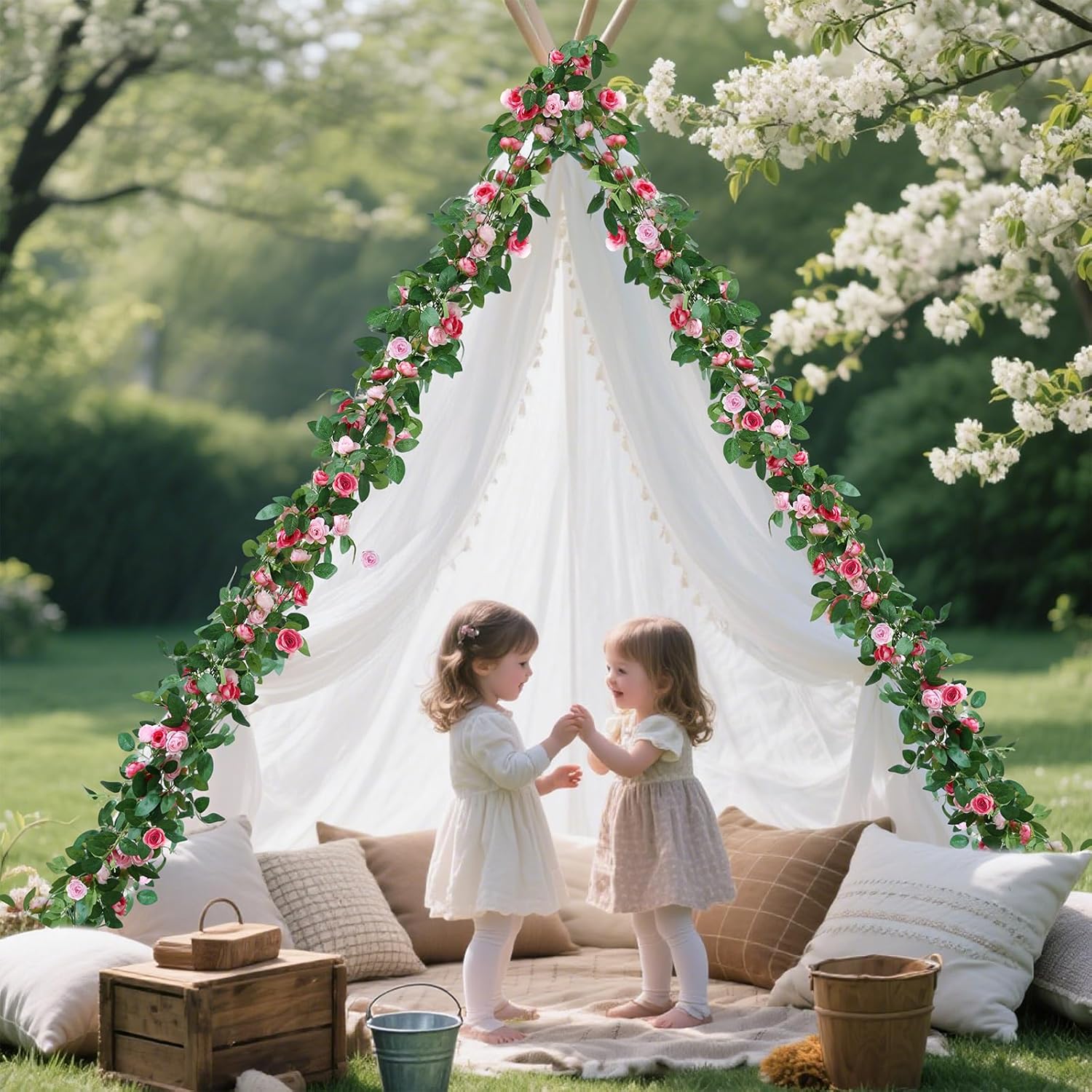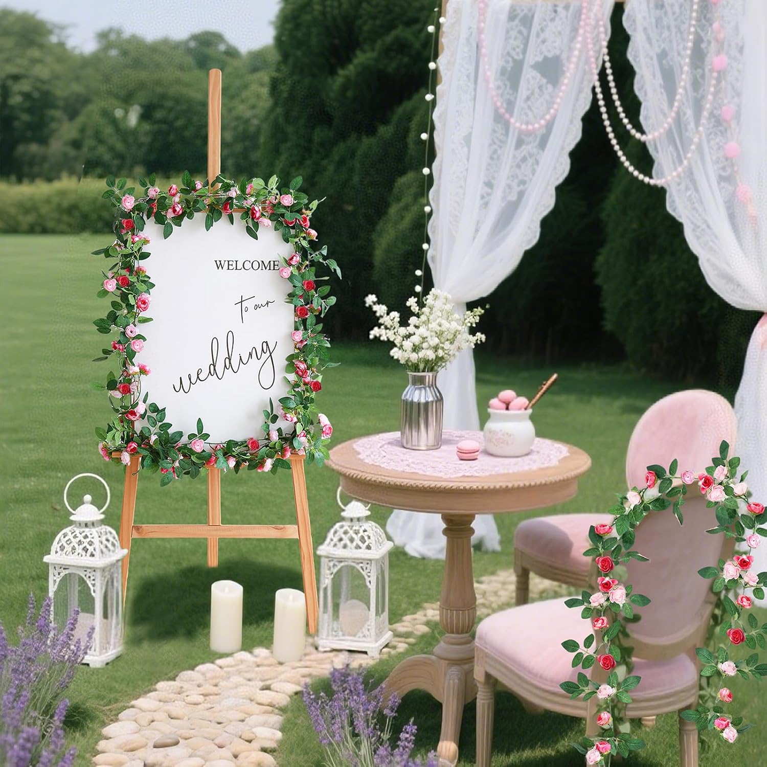 4 Packs Artificial Rose Garland: 31.48Ft Each Fake Flower Vine with Improved Color & 10 Ties for Wedding Arch Backdrop, Home Wall Party Decor, Christmas Decor, Pink