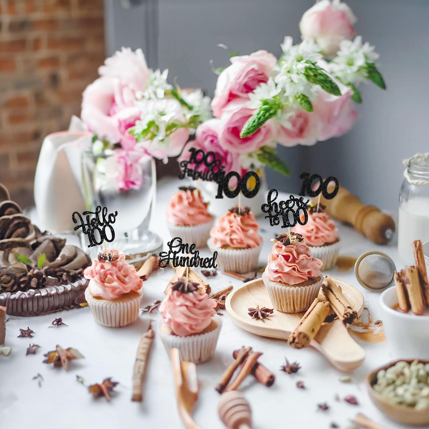 - -These Happy 100th Birthday Cupcake Toppers are so cute and good for happy 100th birthday theme party, cheers to 100 years theme party, 90 fabulous theme party, happy 100th birthday anniversary theme party cake decorations. They can make your cupcake more attractive and bring the fun to your party. You can also apply them for ice cream, fruits, cookies and other desserts.