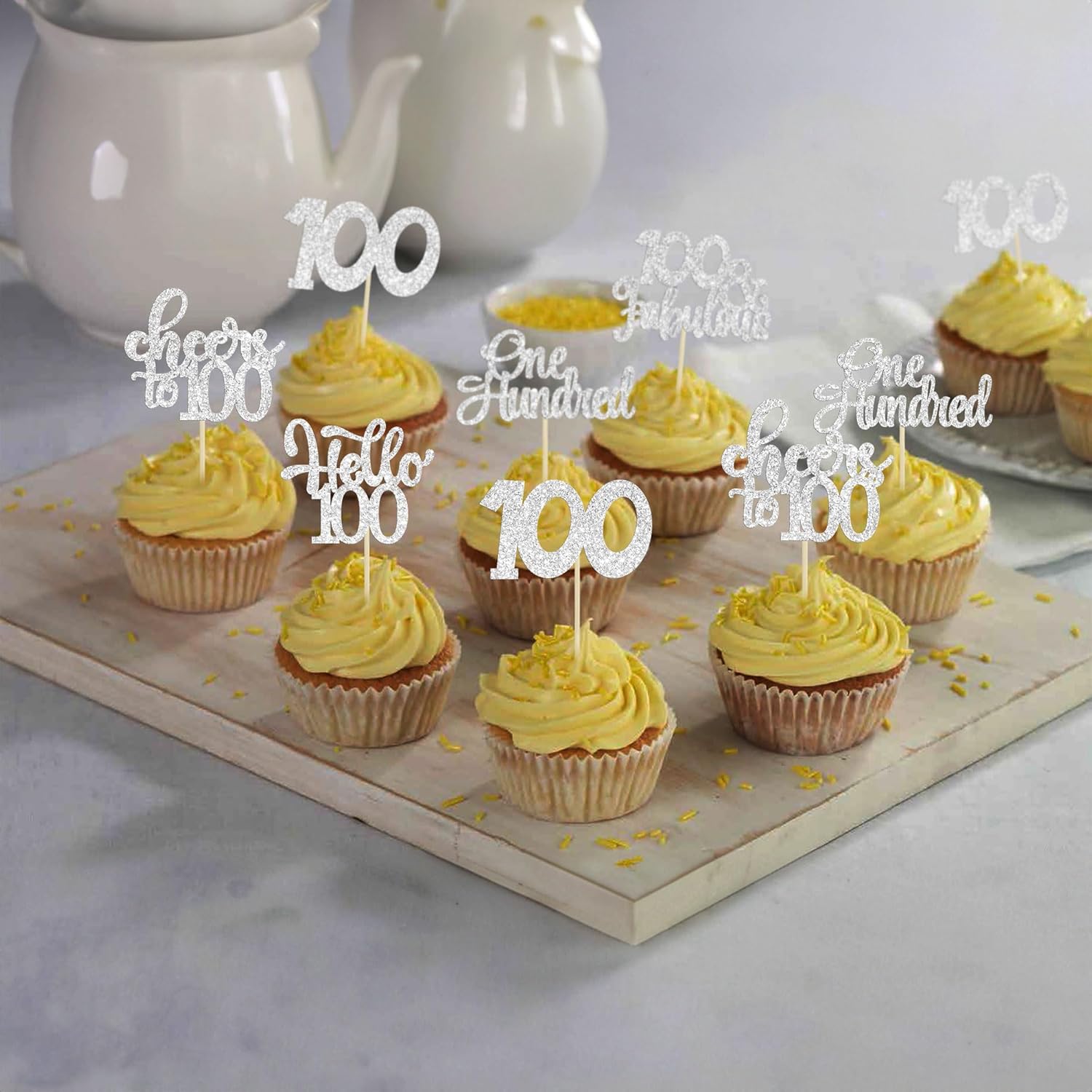 - -These Happy 100th Birthday Cupcake Toppers are so cute and good for happy 100th birthday theme party, cheers to 100 years theme party, 90 fabulous theme party, happy 100th birthday anniversary theme party cake decorations. They can make your cupcake more attractive and bring the fun to your party. You can also apply them for ice cream, fruits, cookies and other desserts.