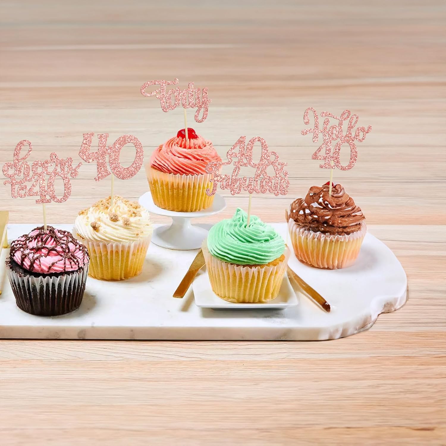 - -These Happy 40th Birthday Cupcake Toppers are so cute and good for happy 40th birthday theme party, cheers to 40 years theme party, 40 fabulous theme party, happy 40th birthday anniversary theme party cake decorations. They can make your cupcake more attractive and bring the fun to your party. You can also apply them for ice cream, fruits, cookies and other desserts.