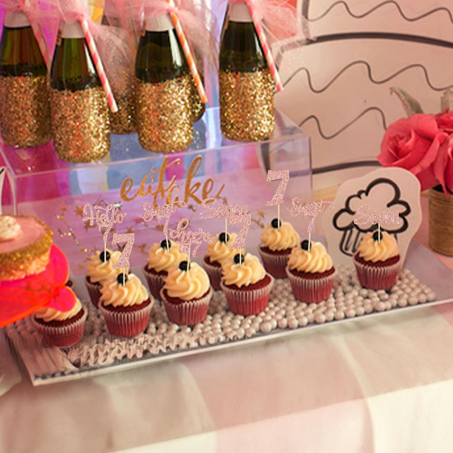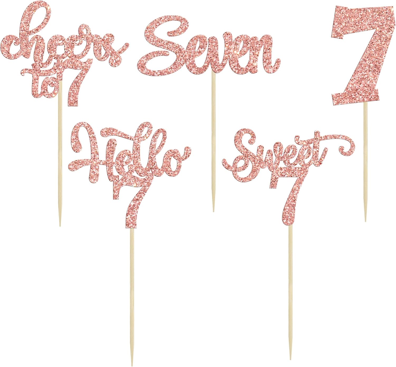 30Pcs 7th Birthday Cupcake Toppers Glitter Seven Happy 7 Cupcake Picks Cheers to 7 Years Old Cake Decorations for 7th Birthday Party Supplies Rose Gold