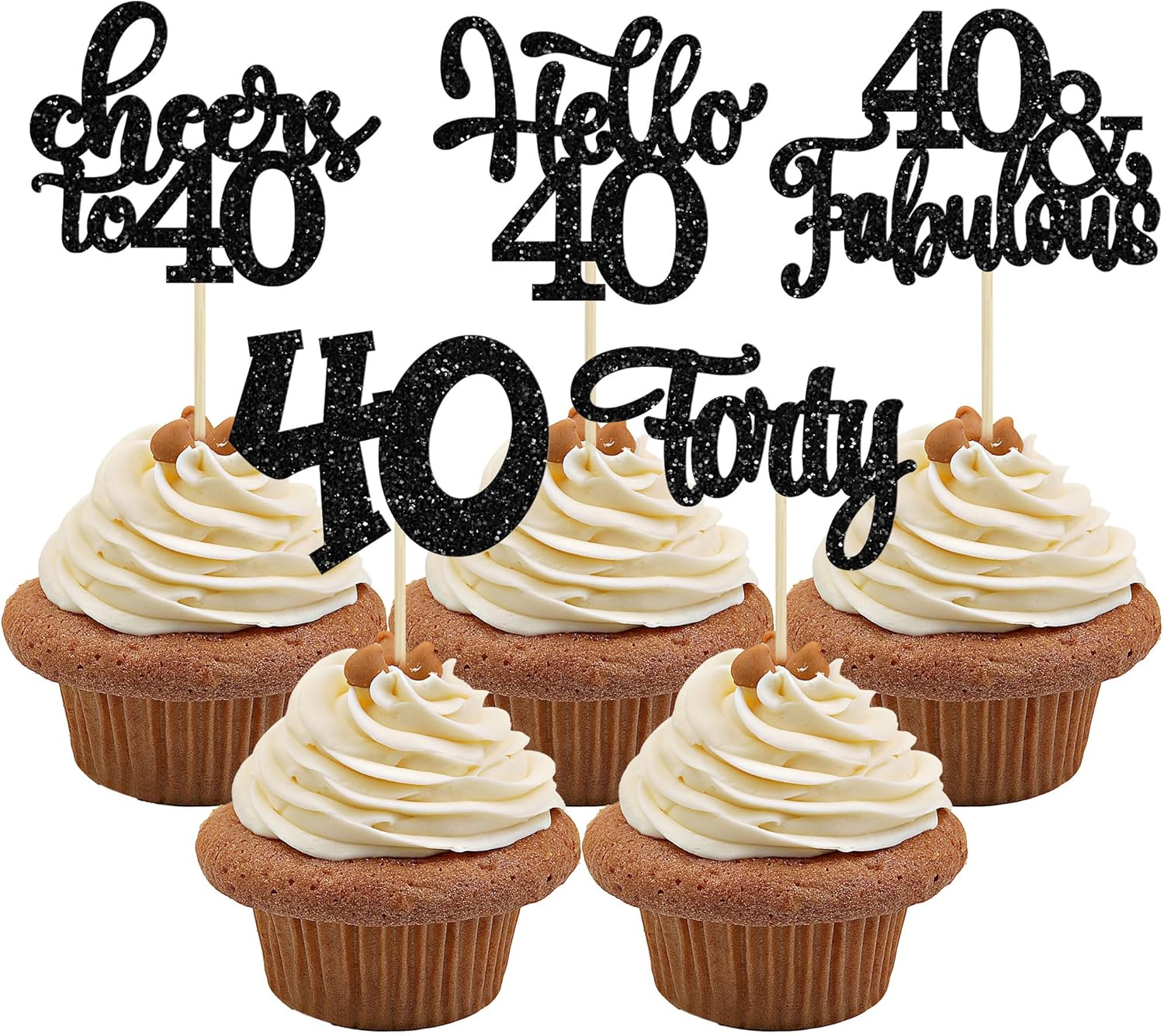 - -These Happy 40th Birthday Cupcake Toppers are so cute and good for happy 40th birthday theme party, cheers to 40 years theme party, 40 fabulous theme party, happy 40th birthday anniversary theme party cake decorations. They can make your cupcake more attractive and bring the fun to your party. You can also apply them for ice cream, fruits, cookies and other desserts.