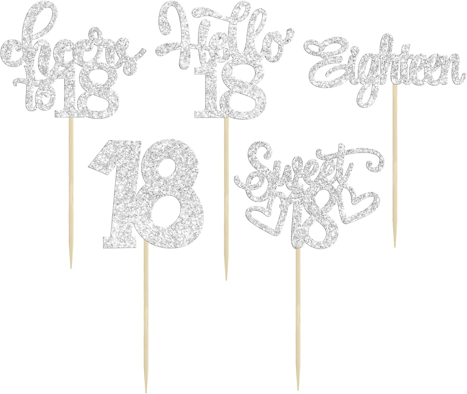 30Pcs18th Birthday Cupcake Toppers Eighteen Happy 18th Cupcake Picks Sweet 18 Cheers to 18 Cake Decorations for 18th Birthday Anniversary Party Supplies Silver Glitter