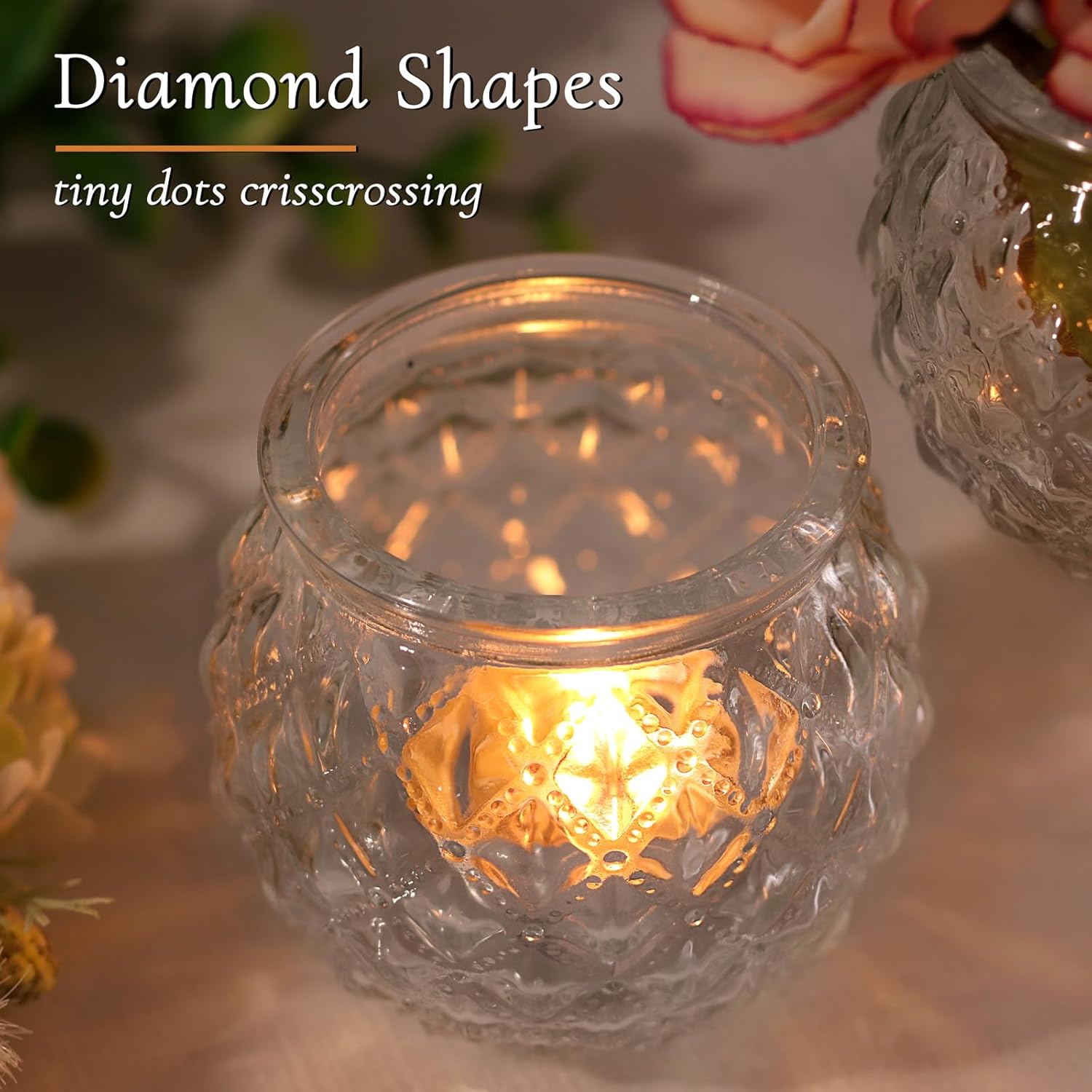 - ❤️❤️[ Unique Diamond Textured Style ]❤️❤️: This is the spark collision of noble and simple fashion. A set of charming candle holders with a unique diamond textured detail. Simple enough to stun but not overwhelm a casual event. The combination of diamond textured and glass makes the votives more textured. If you want a special and unforgettable party, DARJEN's nice design and well-made tea lights candle holder will be a necessity for your!