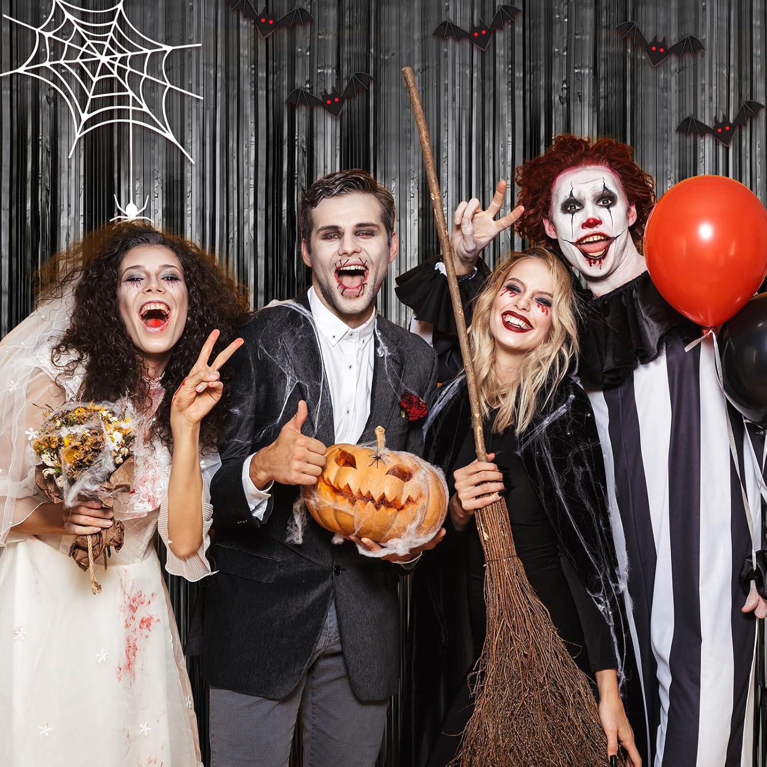 2 Pack Black Foil Fringe Curtains Streamers Party Decorations 3.3 x 8.2 ft, Black Tinsel Curtain Fringe Backdrop for Parties, Door Fringe Birthday Streamers, Photo Booth Backdrops, Party Decor