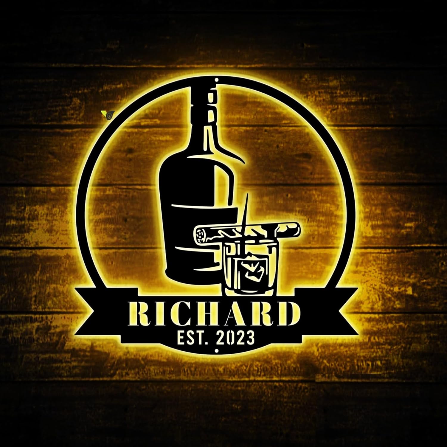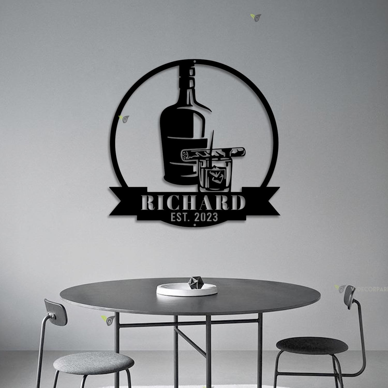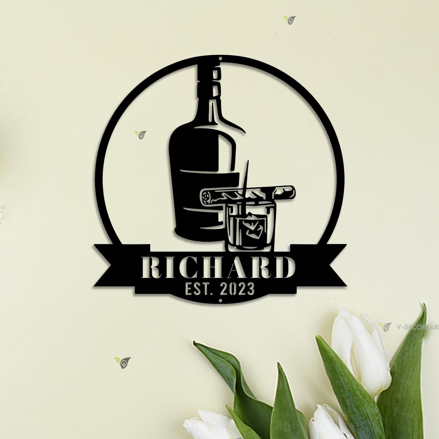 Custom Bourbon Cigar Metal Wall Art LED Light Personalized Whiskey Smoke Sign Home Bar Pub Decor Whiskey Bar Cocktail Decor Birthday Gift