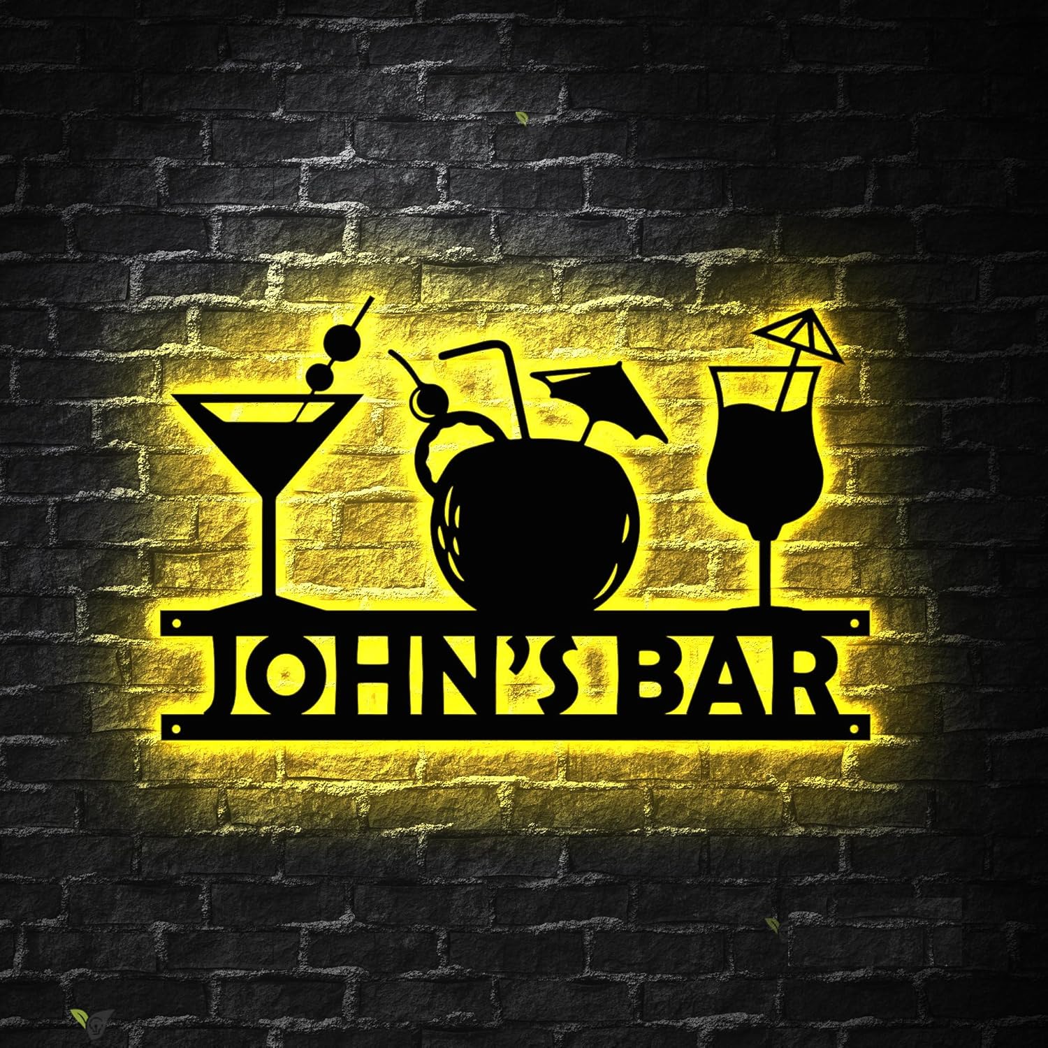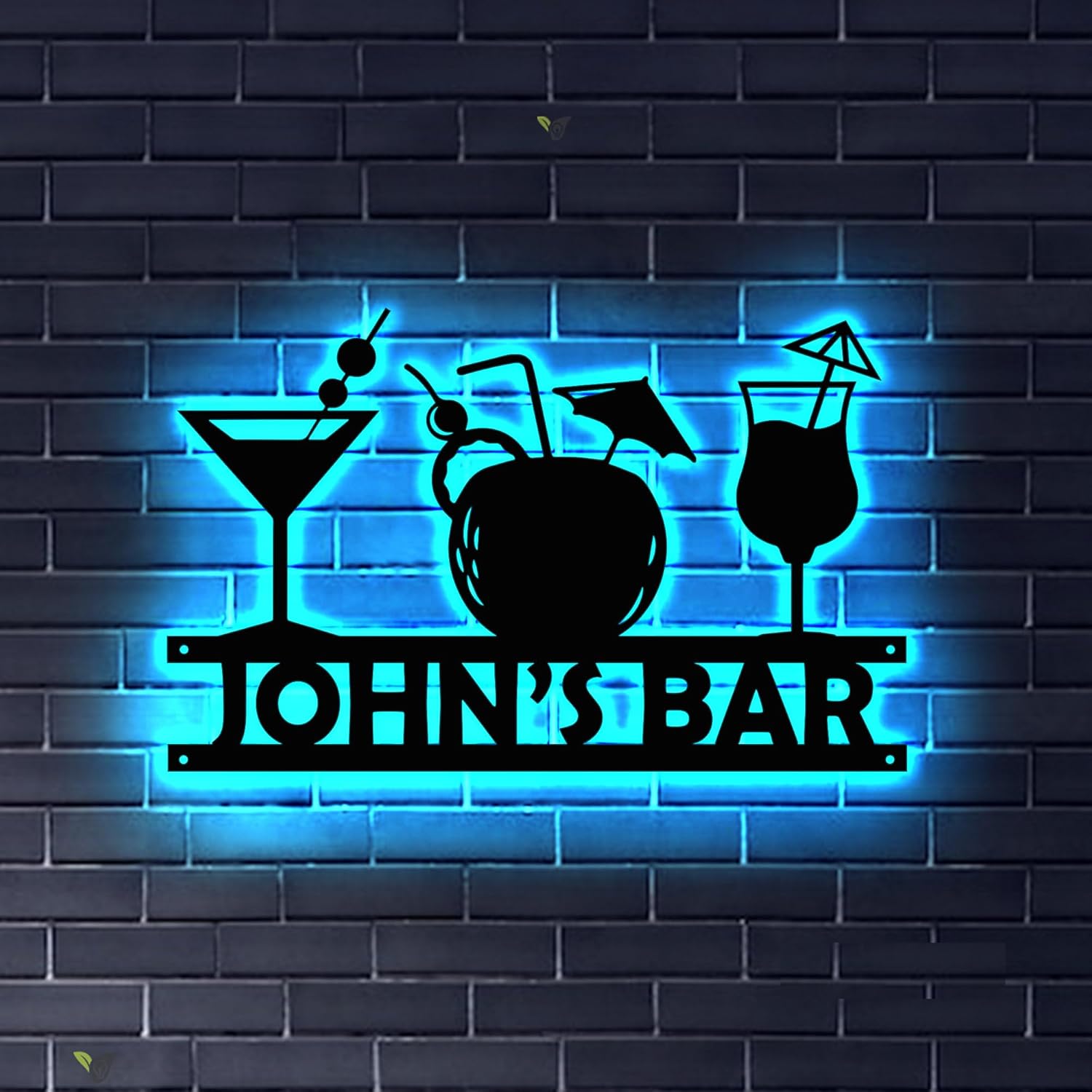 Custom Metal Bar Sign with LED Light Personalized Bar Theme Cocktail Metal Sign, Bar Theme Sign Wall Art Beack Bar Pub Decor Tiki Bar Decor
