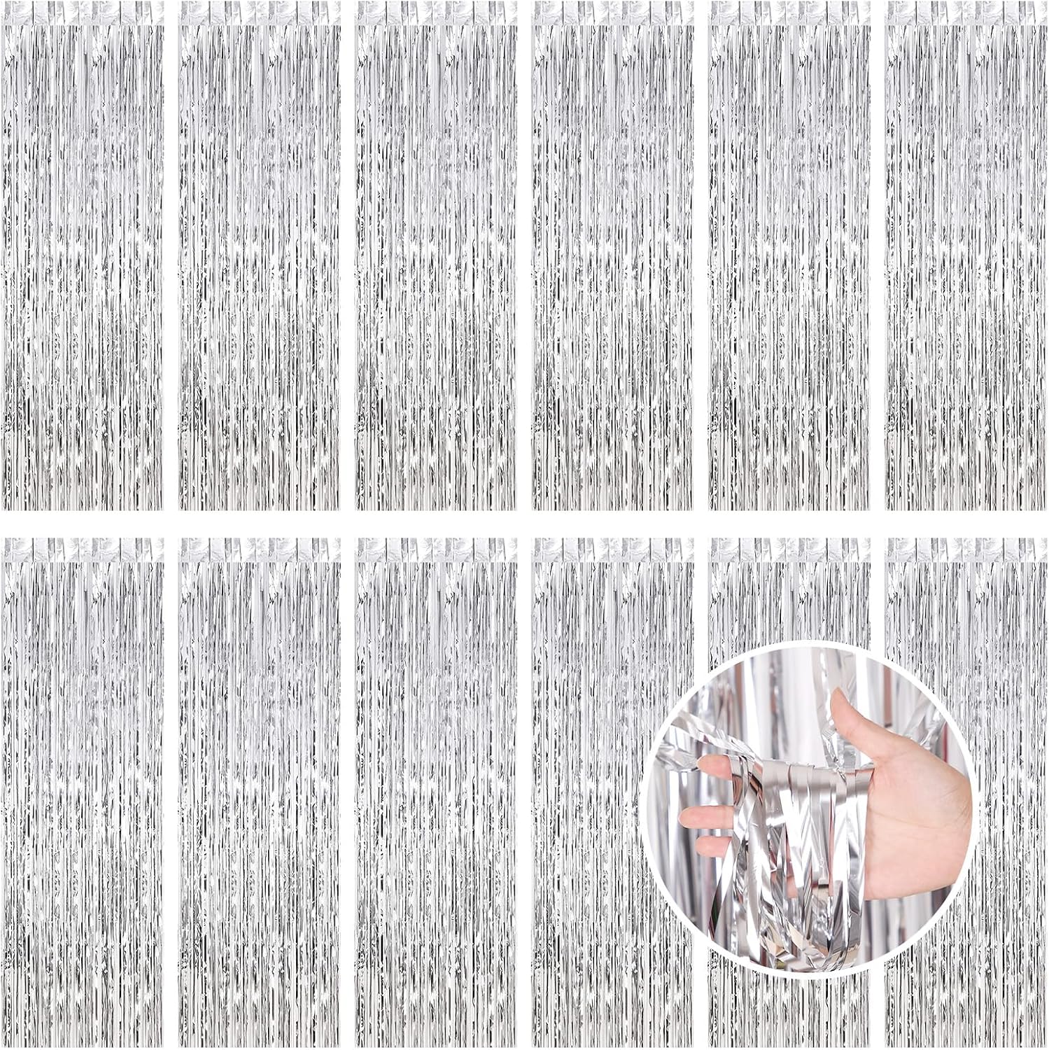 - 【Generous Quantity】Our party decoration supplies include 12 pieces of silver party streamers, the size of each silver foil curtain is 3.3ft x 8.2ft(1m x 2.5m). The extended length and rich quantity can help you create a sparkling party atmosphere and meet your various party decoration needs.
