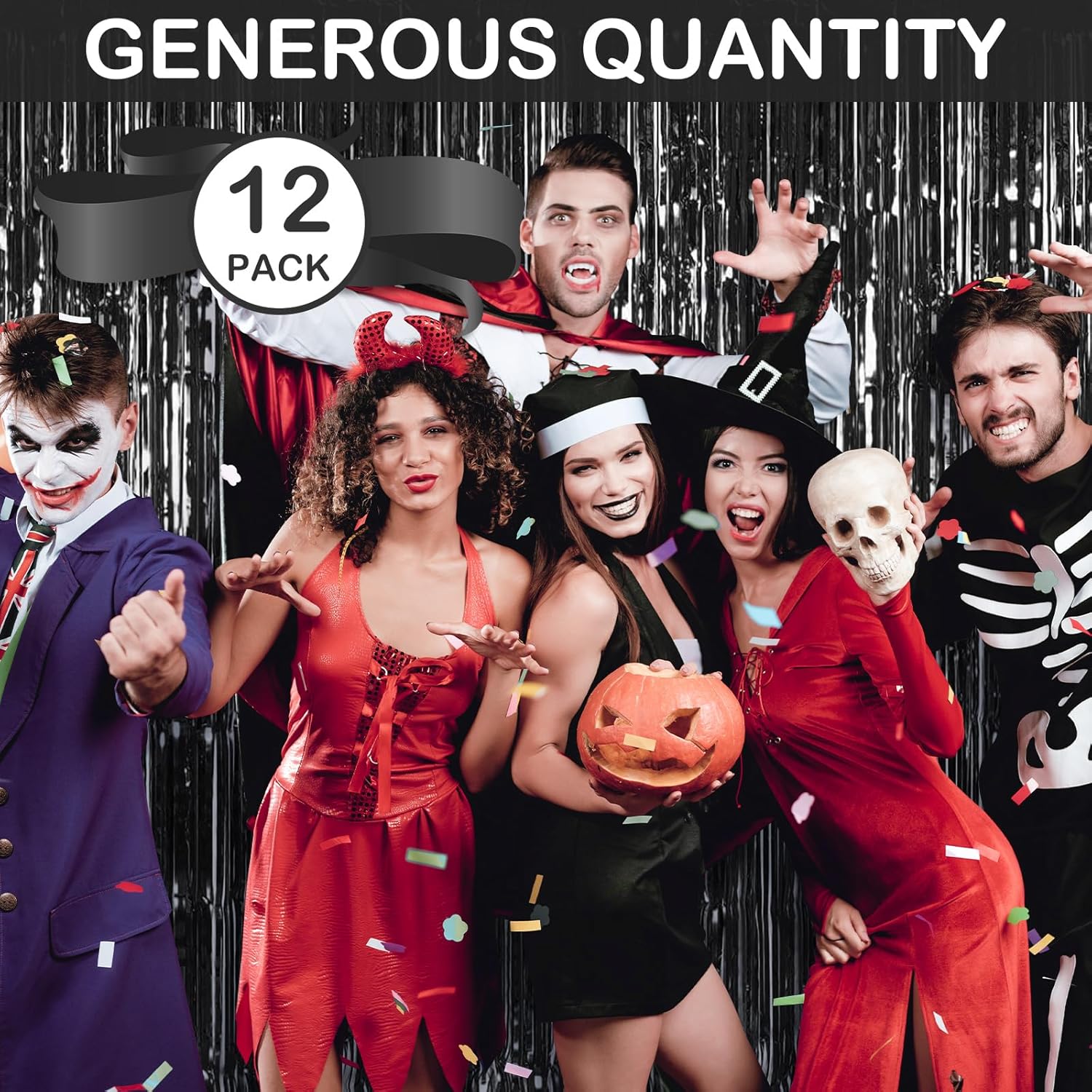 Black Fringe Curtain Party Streamers, 12 Pack 3.3ft x 8.2ft Foil Curtain Backdrop Tinsel Foil Fringe Curtains Photo Booth Backdrop Streamer for Birthday, Wedding, Baby Shower, Disco Party