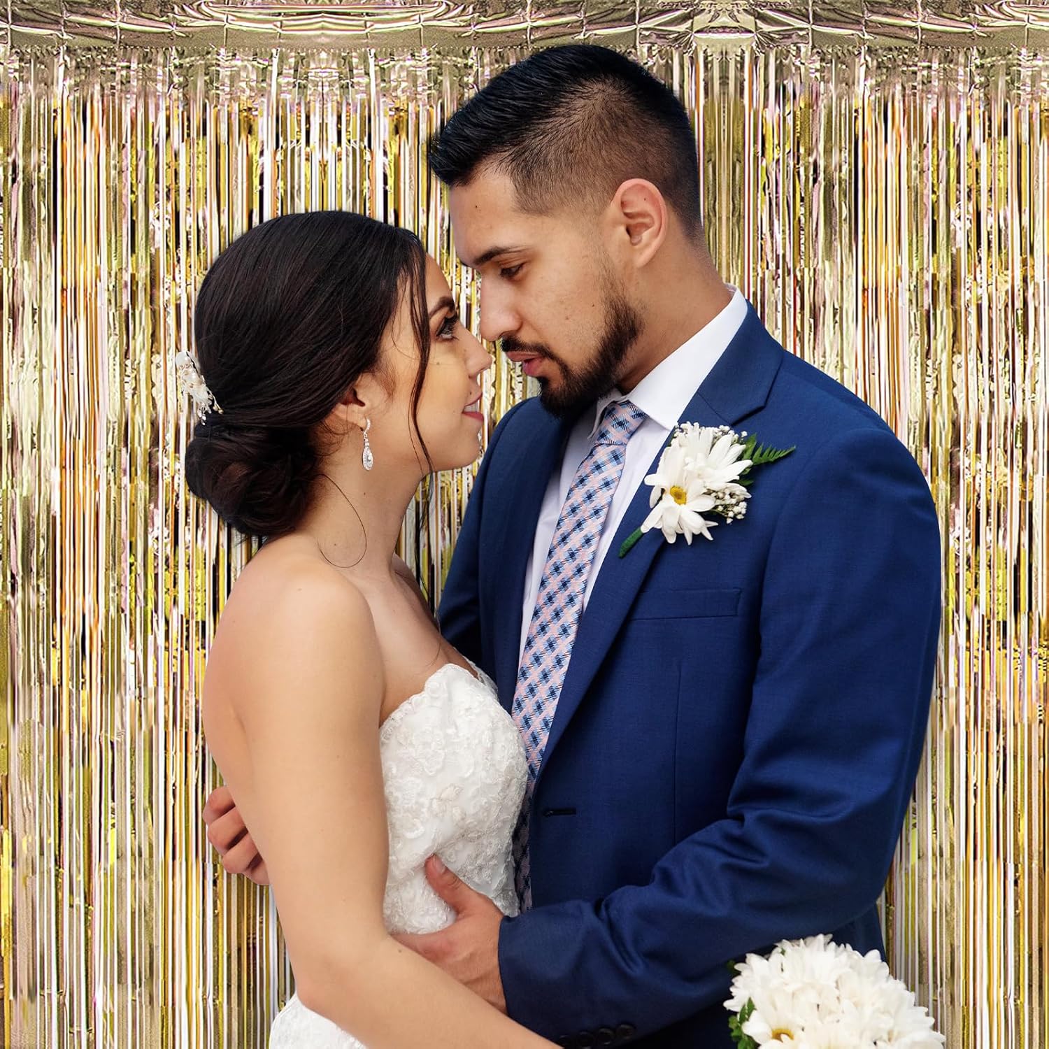 - 【Ideal Party Decoration】Show off your creativity and make your party stand out by using these champagne gold foil fringe curtains to decorate your party. You can hang them on a door or wall as a surprise entrance to the party, or pair them with LED lights, balloons, and banners to create a shiny party backdrop for different themes and occasions.
