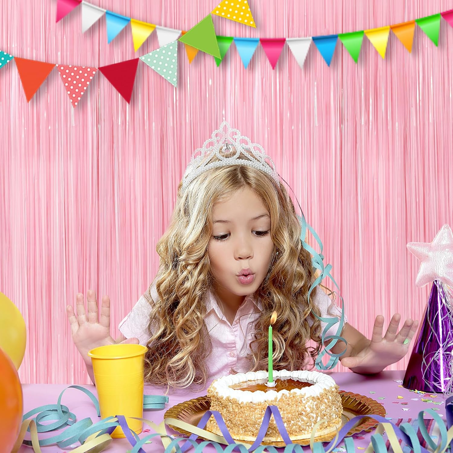 2Pack Pastel Pink Metallic Tinsel Foil Fringe Curtains, 3.3 X 8.3ft Pink Party Streamers Backdrop Curtains for Birthday Party Decorations, Halloween Decor, Foil Curtain Backdrop for Bachelorette Party