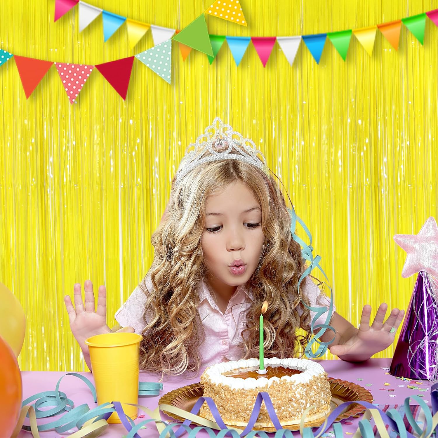 - Eye-Catching Design, Crafted from Foil materials, these laser Streamers foil fringe curtains boast vibrant colors and a shimmering effect that reflects light beautifully. Your guests will be mesmerized by the captivating atmosphere these curtains Streamers create.