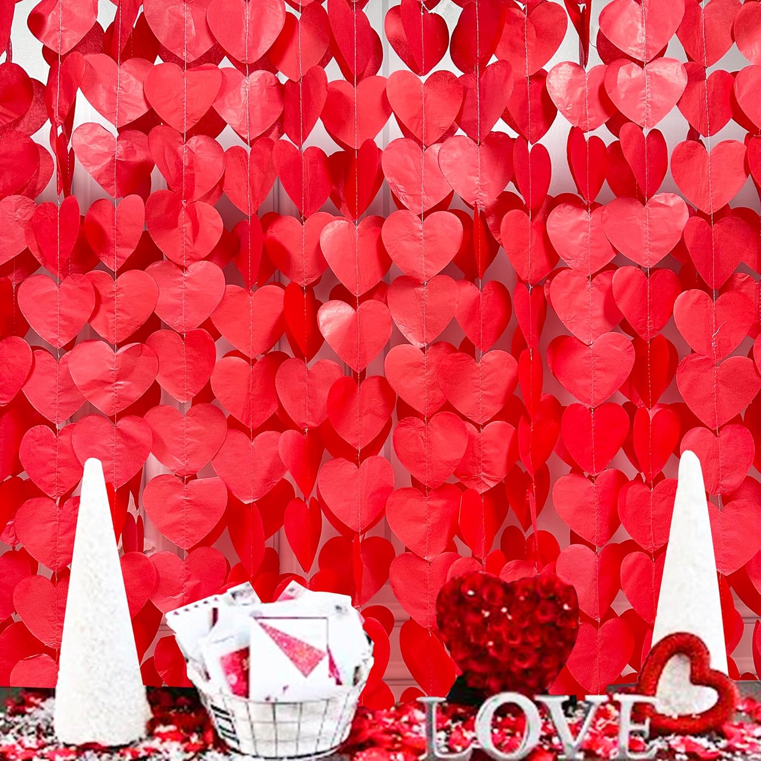 - ❤️PACKAGE CONTAINS- 16 packs of red heart party backdrop garland banner,each string is 12.8 feet with 30 pcs red heart, Total 205 feet.