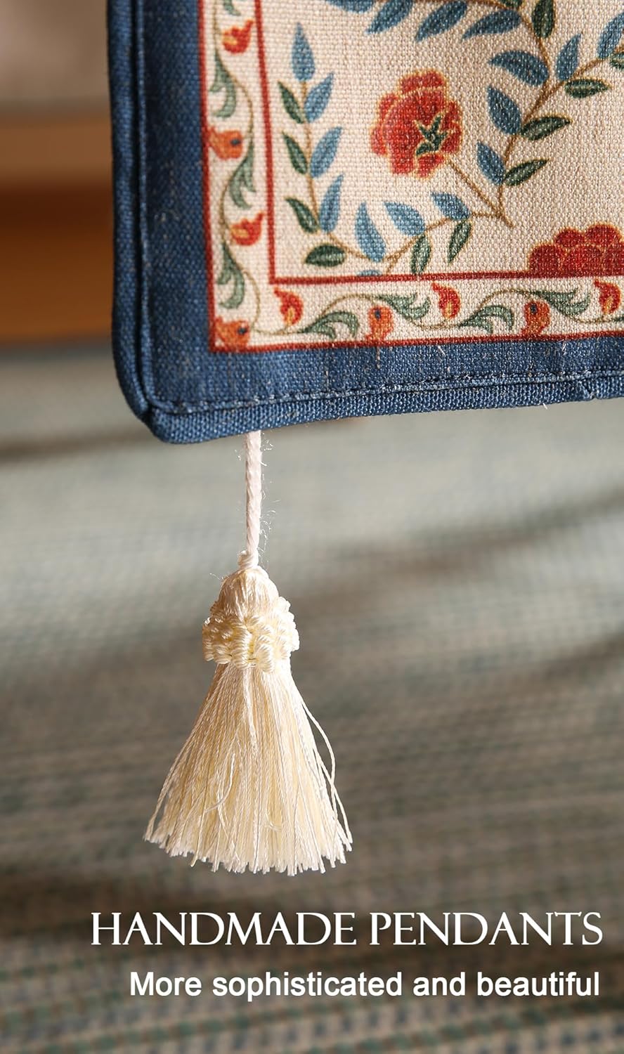 - Care Instructions: Table runners with tassels, pendants, or other decorations should only be washed by hand and placed in a cool, well-ventilated area to dry after washing. For other models without decorations, they can be washed in a gentle cycle in the washing machine or by hand, tumble dried on low heat, and ironed if needed. Please avoid using bleach.