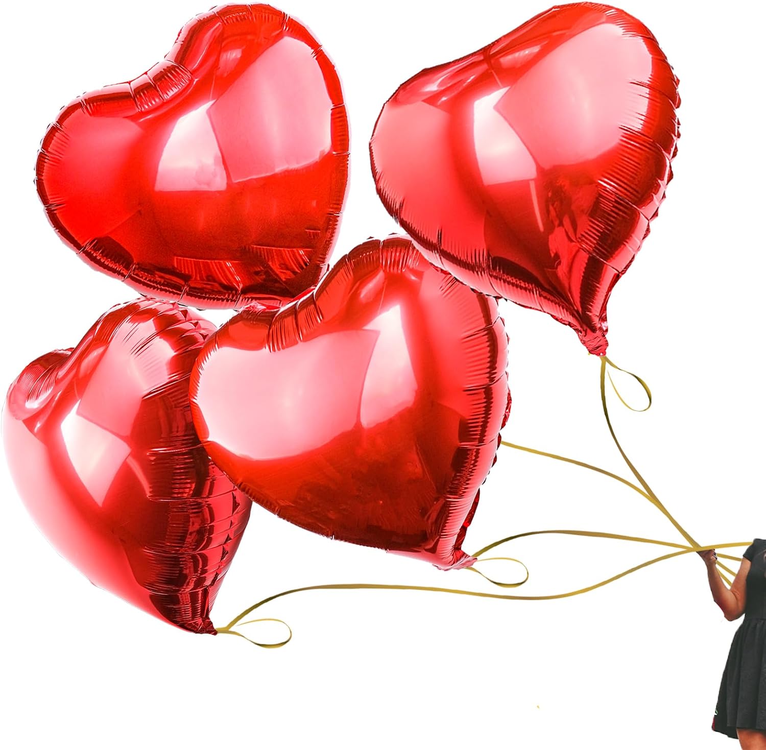 - Included Components : 4 Pcs 32 Inch Big Red Heart Foil Balloons