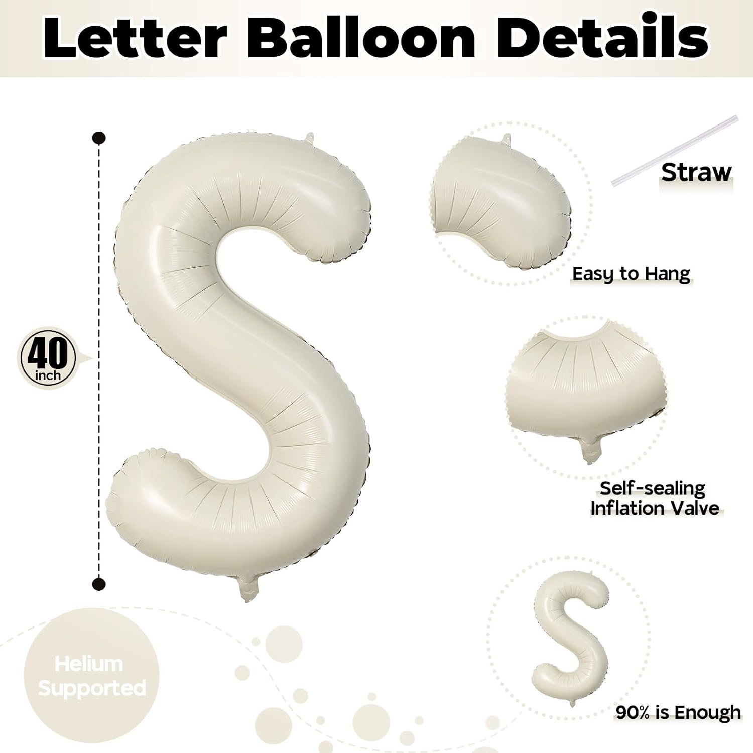 - š What You Get: Our product package includes 1pcs 40 inch "S" letter foil cream white balloon and 1pcs convenient straw for inflate. You can choose any big letter balloons to combine and customize the word you want to form. Make your party more unique and meaningful.