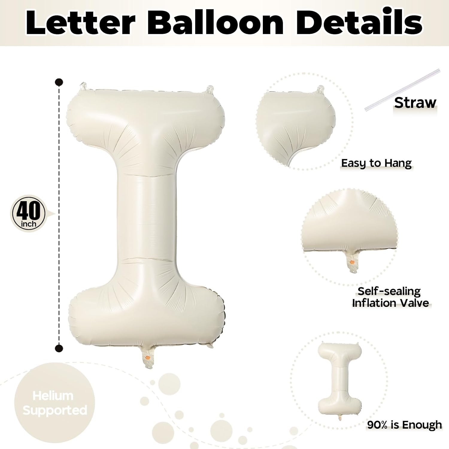 - š Easy Use: Large letter balloons beige have holes on the top to string together to hang in the wall. Can be deflated with a straw to facilitate repeated balloon use. The giant ivory white balloons can be easily combined with other alphabet balloons to form words or names, adding a unique touch to your celebrations, ideal for birthday party.