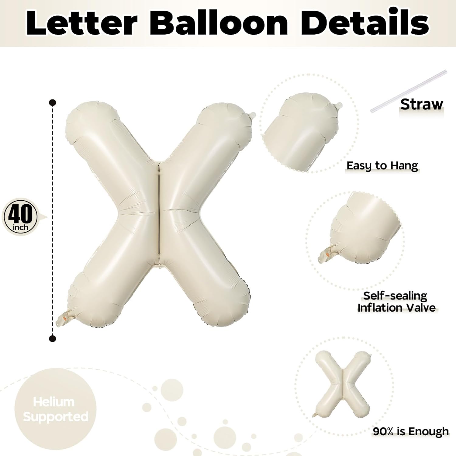 - š What You Get: Our product package includes 1pcs 40 inch "X" letter foil cream white balloon and 1pcs convenient straw for inflate. You can choose any big letter balloons to combine and customize the word you want to form. Make your party more unique and meaningful.