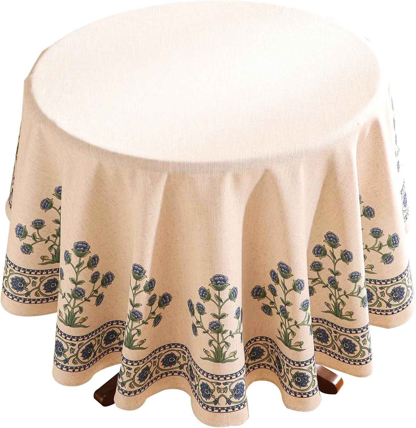 patdrea Designer Linen Blue Round Tablecloth,Vintage Leaves Pattern Floral Anti-Wrinkle Table Cloth,French Fall Dacorative Table Cover for Kitchen Dining,Thanksgiving,Party,Diameter 67"-Ivar B