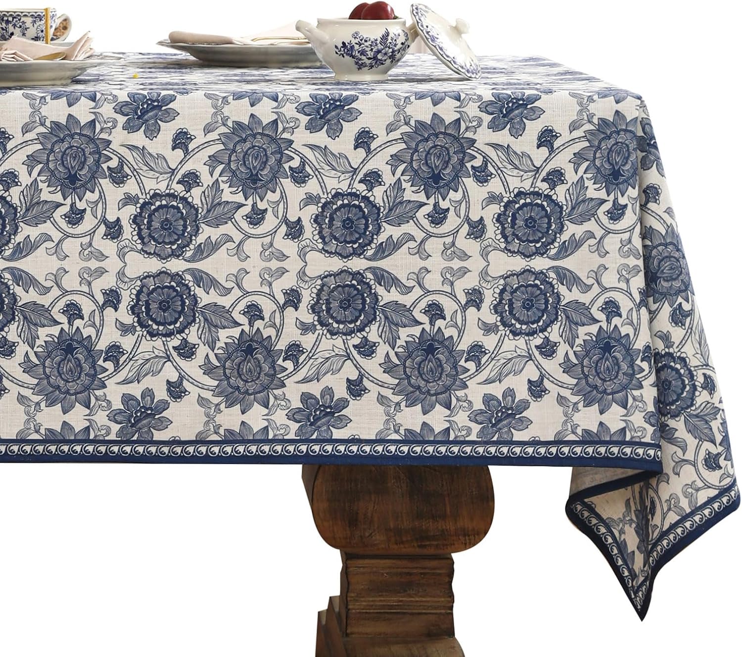 patdrea Designer Vintage Blue Long Rectangle Tablecloth,Linen Anti-Wrinkle Paisley Pattern Farmhouse Table Cloth,Decor Table Cover for Kitchen Dining,Christmas,Thanksgiving,63"x94"-Lantang a