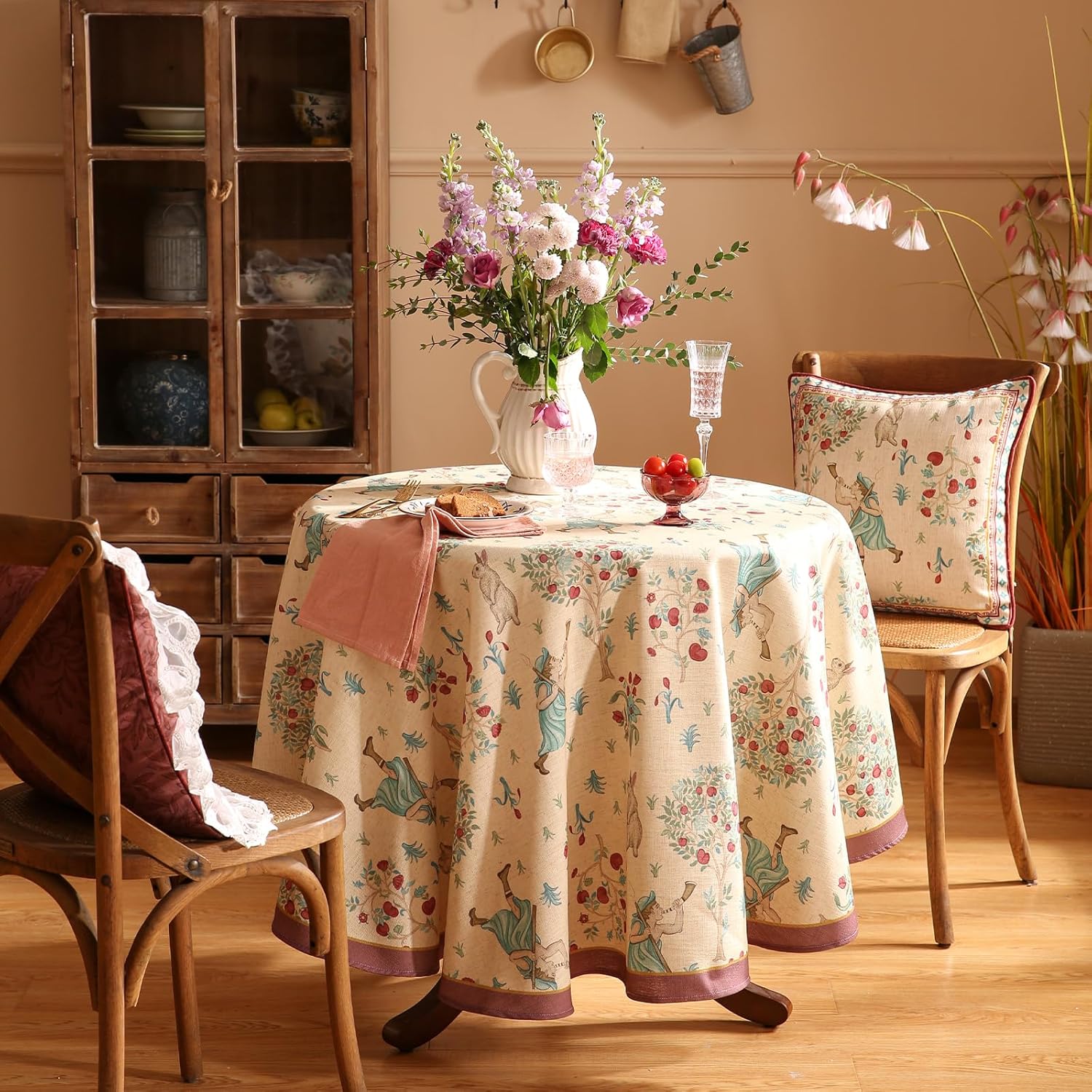 patdrea Designer Beige Tablecloth for Round Table,Vintage Italian Linen Trees Pattern Table Cloth,Decor Cover for Kitchen Dining Christmas,Thanksgiving,Tea Party,Diameter 55"-Tatiana a