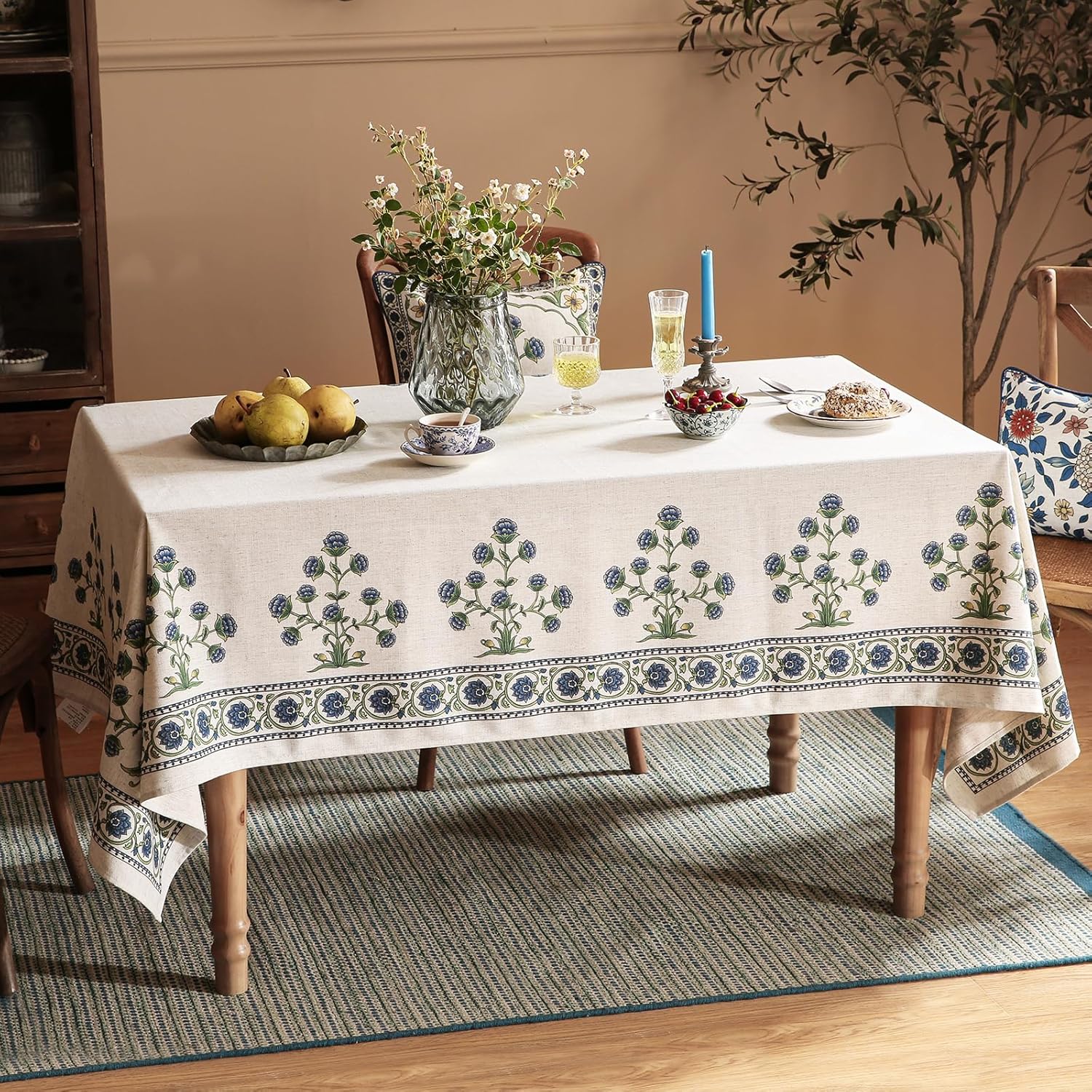 patdrea Designer Linen Vintage Long Blue Rectangle Tablecloth,Leaves Pattern Anti-Wrinkle Floral Table Cloth,Table Cover Cloth Decor for Kitchen Dining,Christmas,Thanksgiving,Party,63"x94"-Ivar B