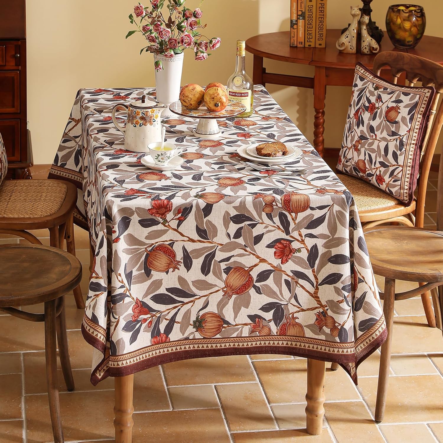 patdrea Designer Linen Small Square Tablecloth,Fall Framhouse French Pomegranates Leaves Pattern Tablecloths,Table Cover Cloth Decor for Kitchen Dining Christmas,Thanksgiving,55"x55"-Tehran a