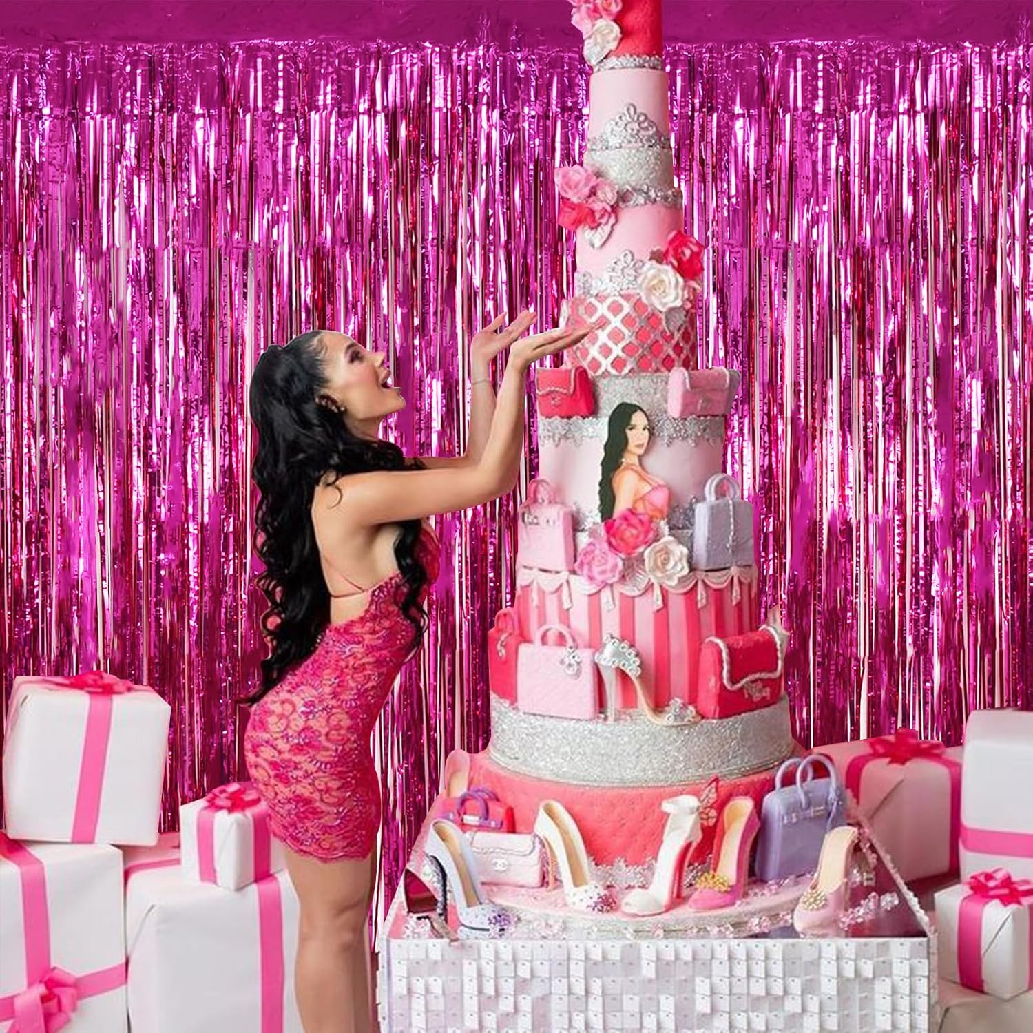 - 【shiny Party Streamer Backdrop】 Want to enjoy the feelings of Hot pink girls? Want to take the photo to share your party to your friends? Get this foil backdrop curtain as the party backdrop now! You will find that the shiny tinsel is great to make your party to be a fashion one!