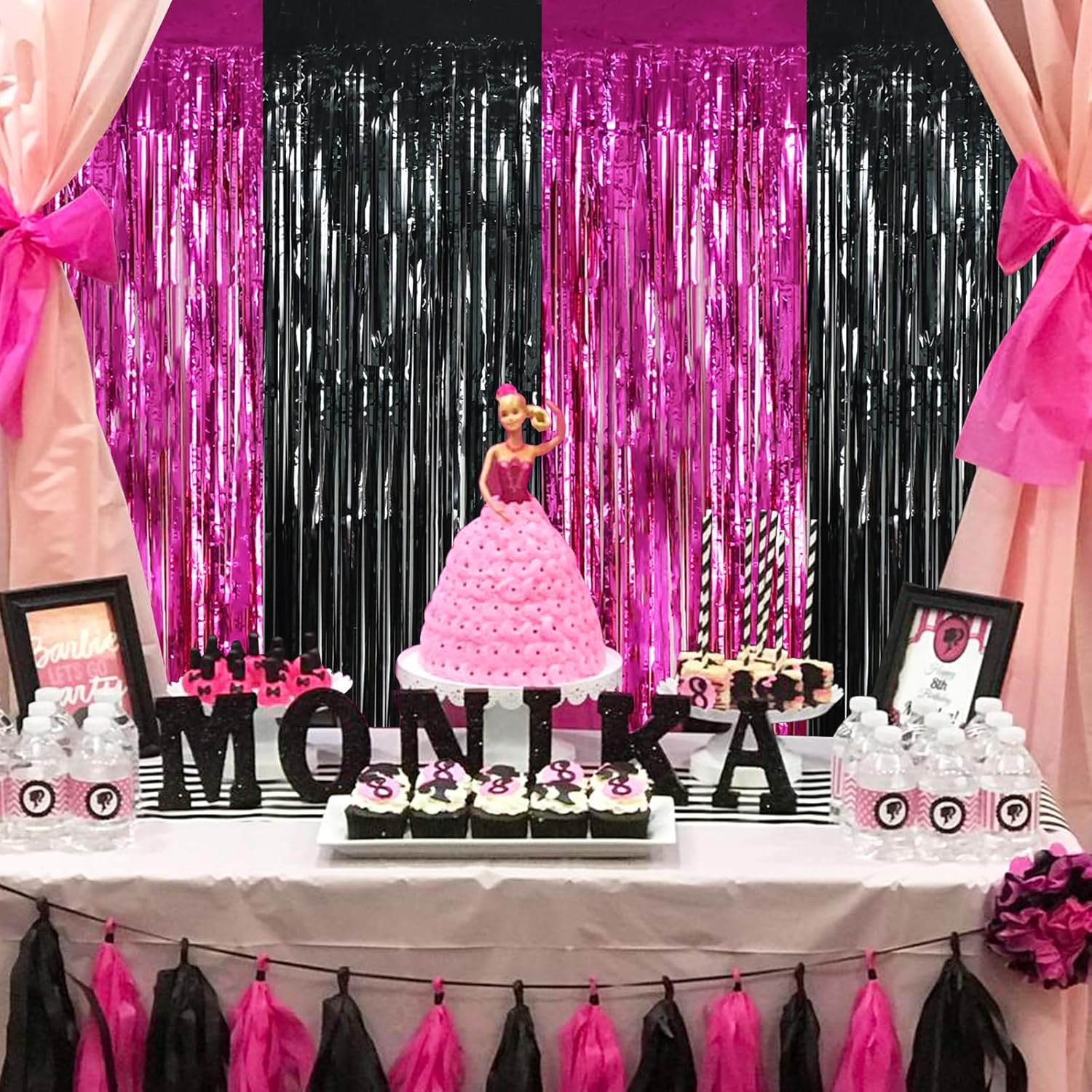 - 【shiny Party Streamer Backdrop】 Want to enjoy the feelings of Barbie girls? Want to take the photo to share your party to your friends? Get this foil backdrop curtain as the party backdrop now! You will find that the shiny tinsel is great to make your party photo colorful!