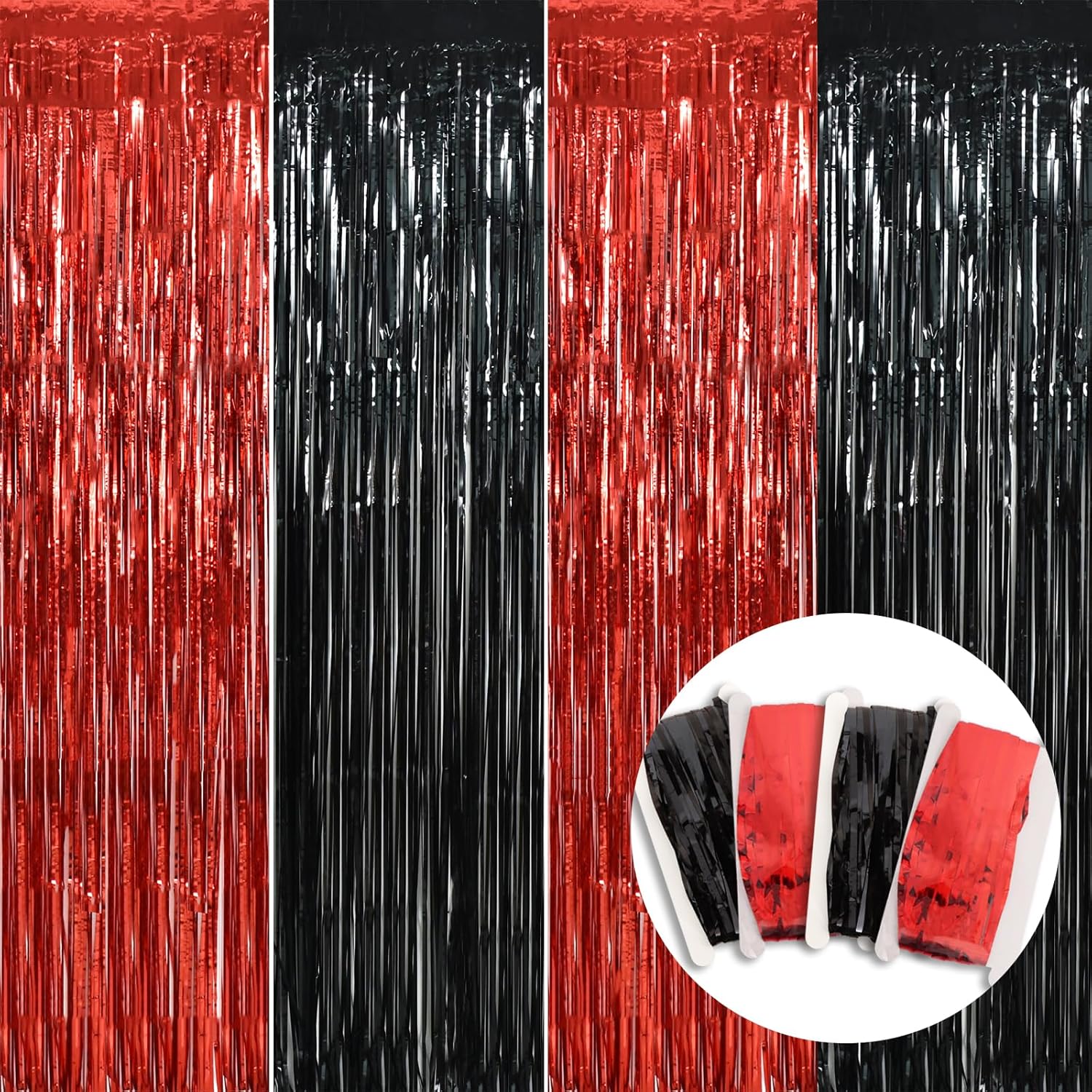 - 【shiny Party Streamer Backdrop】 Want to make your party to be a scream one? Get this foil backdrop curtain as the party backdrop now! You will find that the red and black streamers is great to make your party more exciting!