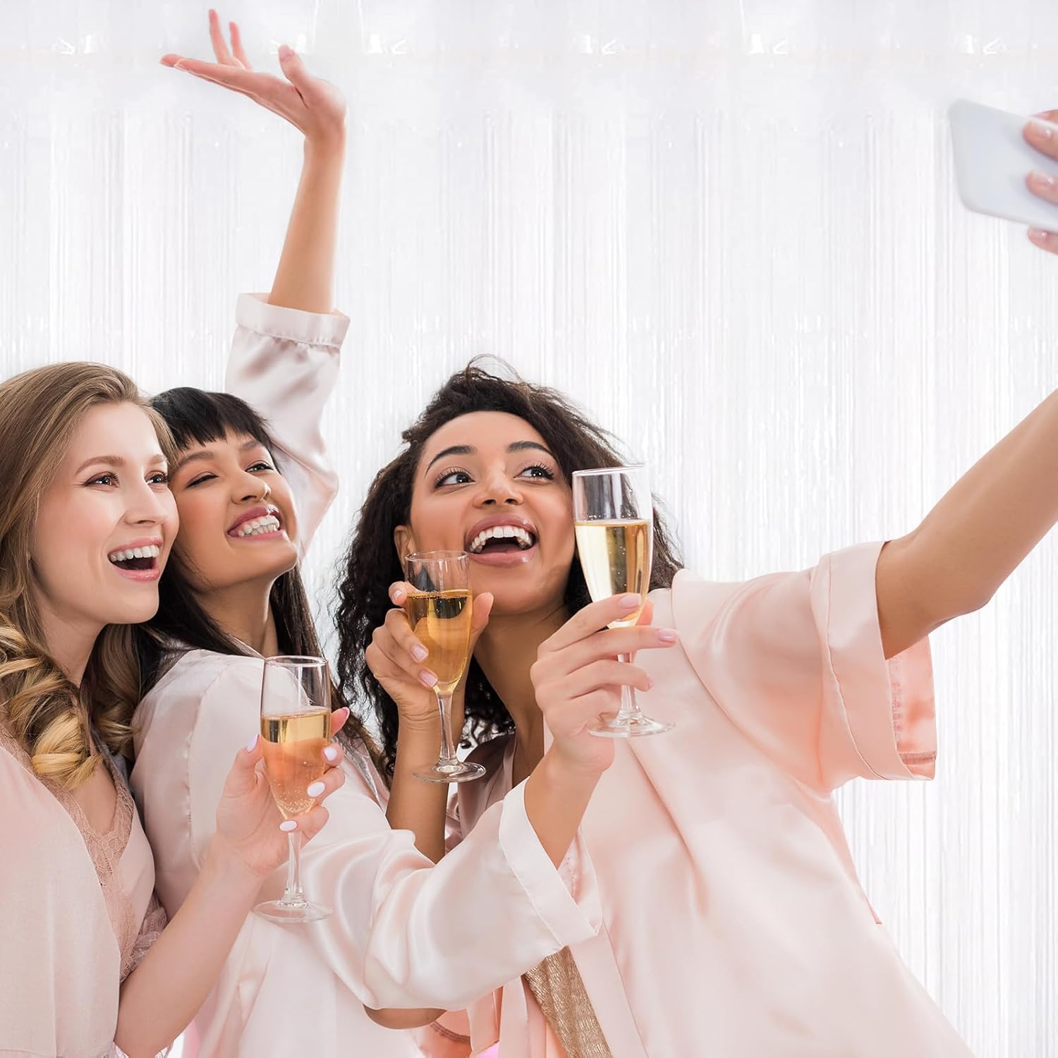 - 【Premium Material】The white foil curtain backdrops are made of sturdy and flexible tinsel with a shiny and reflective surface, which will maintain the glitter effect all the time. Great for creating a sparkling atmosphere as decorations for parties.