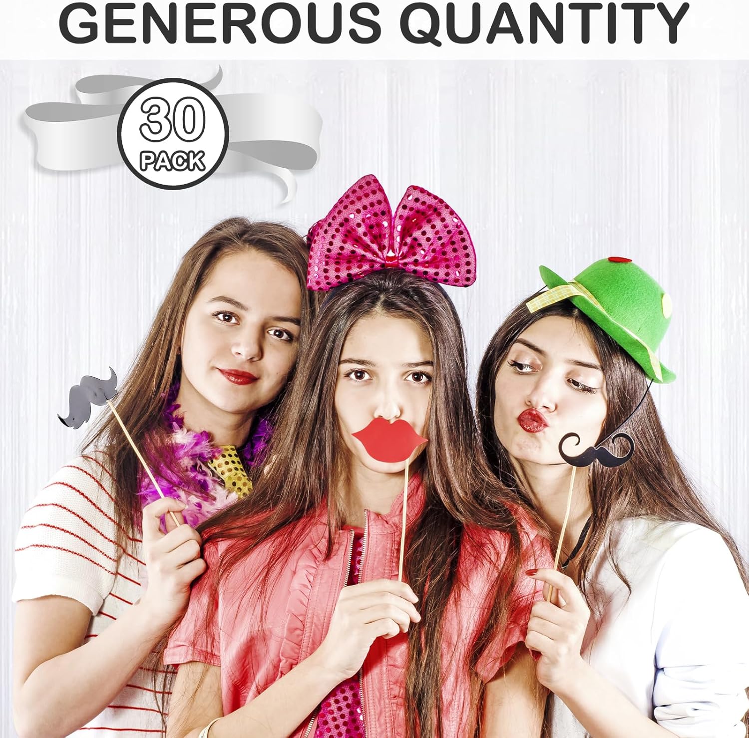 30 Pack White Foil Fringe Curtain Backdrop, 3.3x8.2 Feet Metallic Tinsel Streamer Curtains Photo Booth Props for Wedding/Anniversary/Bridal Shower/Christmas/New Year/Valentine's Day Party Decorations